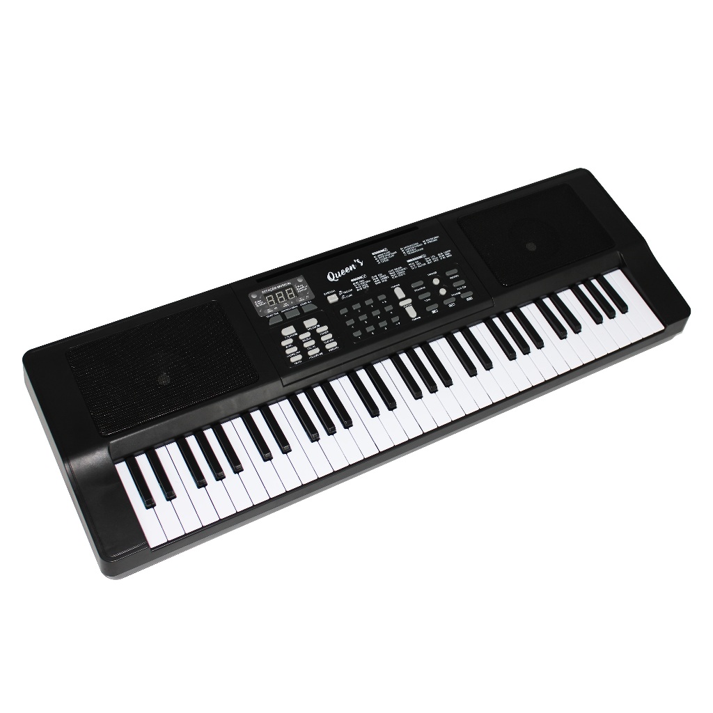 O Teclado com 61 teclas da linha Queen´s veio para mostrar a sua versatilidade com 100 tipos de timbres para você escolher qual o ideal e ainda atingir graves e agudos incríveis com suas 5 oitavas. Tem 32 velocidades, 10 músicas de treino e 100 tipos de timbres de instrumentos como piano, guitarra, acordeon e saxofone. Possui display de LED de 3 dígitos, botões de acorde Fingered (faz a nota completa usando várias teclas), efeito Vibrato, acorde Single (toca uma tecla e ele faz acompanhamento em tom maior), efeito Sustain e diversas outras funções. Também incluso: microfone, cabo USB e fonte. Com controle de volume, é muito fácil de operar. Muito utilizado em estúdios, funciona tanto à pilha (não inclusas) quanto à fonte de energia (2x1,5W). Característica: - Marca: Queen's - Modelo: D184557 - Cor: Preto - Quantidade de teclas: 61 Teclas - Possuí controle de velocidade: Sim - Número de músicas: 10 Músicas demonstrativas - Tons disponíveis: 100 Tons - Painel digital: Sim - Funcionamento com pilhas: Sim, 4 pilhas AA - Funcionamento com fonte de energia: Sim. 2,1v 5W Altura x Largura x Profundidade 13cm 26 cm 77cm Itens Inclusos: - 1 Teclado Musical Iniciante Queen’s 61 Teclas Preto - 1 Microfone - 1 Fonte de Energia 12v Bivolt (Opcional) funciona também à pilhas (4 AA) não inclusas. Garantia de 3 meses.