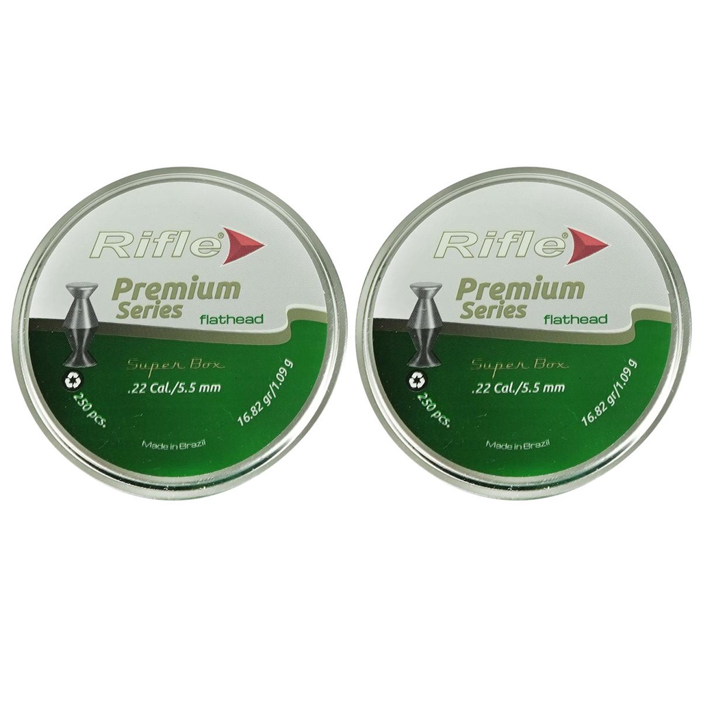 Produto de uso exclusivo em práticas esportivas. O uso do produto exige treinamento e equilíbrio emocional. Deverá ser guardado em lugar seguro e fora do alcance de terceiros. A marca RIFLE é uma empresa que há 30 anos fabrica as melhores munições para Armas de Pressão e Ar comprimido do Brasil. Reconhecida por produzir Chumbos que estão entre os quatro melhores do mundo, usados também por atletas olímpicos e campeões mundiais, aprovados pelas melhores fabricantes de armas do mundo. Símbolo de qualidade e excelência. O Chumbinho Premium Flathead possui 16.82 de gramatura e um peso de 1.09 gramas, com Calibre de 5.5mm. Ele é muito utilizado para competições de tiros em alvos de papel, sendo usado então por vários medalhistas olímpicos. Sua eficiência de disparado é de até 25 metros e sua ponta é chata ( Flathead ) o que facilita a visualização das perfurações nos Alvos. Ta esperando o que? garanta agora mesmo o seu com o melhor custo benefício do mercado, aqui, na Ar15 SPORT! ESPECIFICAÇÕES TÉCNICAS: - Marca: Rifle - Calibre: 5.5mm (.22) - Modelo: Premium Series - Linha: Flathead - Material: Chumbo - Quantidade: 250 unidades - Gramatura: 16.82gr - Peso: 1.09g - Peso bruto total da lata: 150g ITENS INCLUSOS: - 02 Lata de Chumbinho Rifle Premium Series Flathead calibre 5.5mm 250un. INFORMAÇÃO: Os equipamentos, peças e acessórios aqui listados são de uso exclusivo em armas de pressão (gás comprimido ou mola), airsoft, paintball, esferas plásticas (BBS) e estão em conformidade com a legislação brasileira de USO PERMITIDO "É permitido o uso de armas de pressão por ação de gás comprimido ou por ação de mola, com calibre igual ou inferior a seis milímetros (6mm ou 6.0mm), e das que lançam esferas de plástico com tinta, como os lançadores de paintball." Conforme parágrafo único do Art. 11 do DECRETO Nº 11.615, DE 21 DE JULHO DE 2023. A venda desses itens é feita somente para maiores de 18 anos mediante a comprovação de maior idade. Atenção: O envio de Armas de pressão e Airsoft é realizado somente por transportadora. Caso tenham dúvidas entrar em contato.