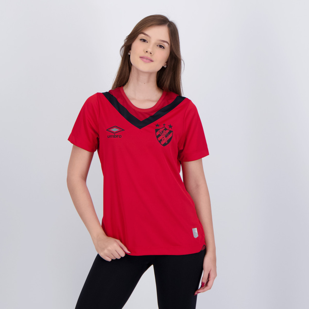 Composição: 100% Poliéster Cor Predominante: Vermelha Indicado para: Jogo Clube: Sport Recife Origem: Nacional Gênero: Feminino Escudo: Bordado Manga: Curta Gola: Careca Dimensões aproximadas (A x L): P: 63 x 45 cm M: 64 x 46 cm G: 66 x 51 cm GG: 69 x 53 cm EG: 70 x 57 cm EEG: 72 x 60 cm