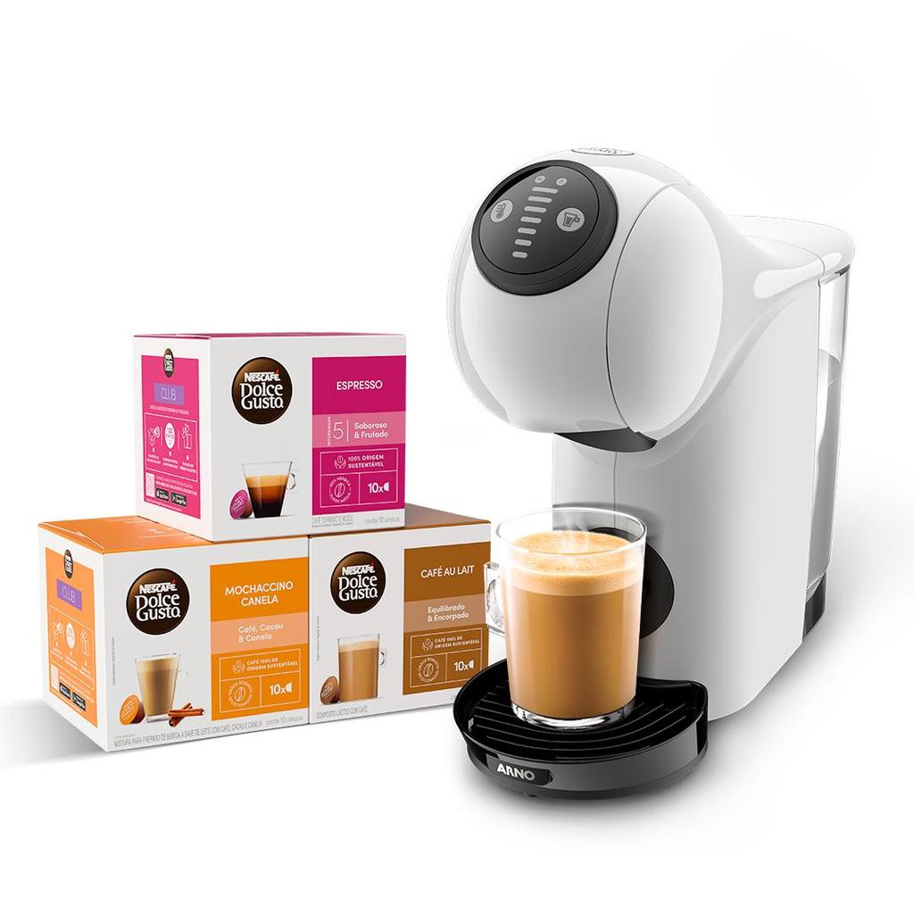 KIT contém: 1x Cafeteira Genio S Basic Branca 1x Espresso 10 cápsulas 1x Au Lait 10 cápsulas 1x Mochaccino Canela 10 cápsulas Personalização e praticidade em um só toque. A cafeteira NESCAFÉ® Dolce Gusto Genio S Basic redefine sua experiência de café. Com um painel LED intuitivo e 15 bar de pressão, ela oferece cafés com aroma e crema perfeitos, além da função XL para bebidas maiores. Compacta e elegante, a Genio S Basic é ideal para quem busca praticidade e economia. Revolucione sua rotina com o Sistema NESCAFÉ® Dolce Gusto. Esta máquina de café multibebidas possibilita a preparação de cafés, cappuccinos, lattes, chocolates e chás em cápsulas, proporcionando qualidade de cafeteria em casa em mais de 50 opções de bebidas. Desfrute da conveniência e da modernidade das bebidas em cápsulas, uma solução prática para quem valoriza variedade e qualidade. Aproveite a inovação e a versatilidade da máquina de café Genio S Basic. Transforme seu dia a dia com uma cafeteira que combina estilo, tecnologia e uma experiência de café incomparável. Descubra a diferença que a qualidade de cafeteria pode fazer no conforto do seu lar.