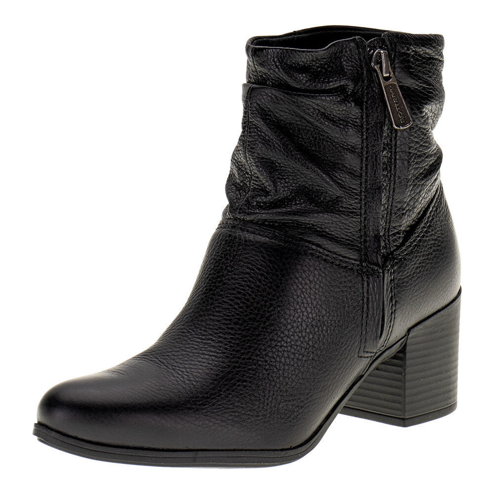 A Bota Feminina Cano Baixo Bottero não segue tendências, ela as cria. Confeccionada em Couro, forro em têxtil e fechamento em zíper na lateral. A palmilha em PU proporciona conforto. O solado em borracha conta com salto grosso e o cano mede treze centímetros por trinta e um de circunferência.. MODELO: 1196907 REFERENCIA: 346907 MARCA: Bottero MATERIAL DA PALMILHA: PU MATERIAL DA SOLA: Borracha MATERIAL INTERNO: Têxtil ACABAMENTO: Colado/Costurado GÊNERO: Female GRUPO DE IDADE: Adult TIPO DE SALTO: Grosso MEDIDA DO CANO: 13 cm aproximadamente CIRCUNFERÊNCIA DO CANO: 31 cm aproximadamente MATERIAL DO SAPATO: Couro MEDIDA DO SALTO: 7 cm aproximadamente