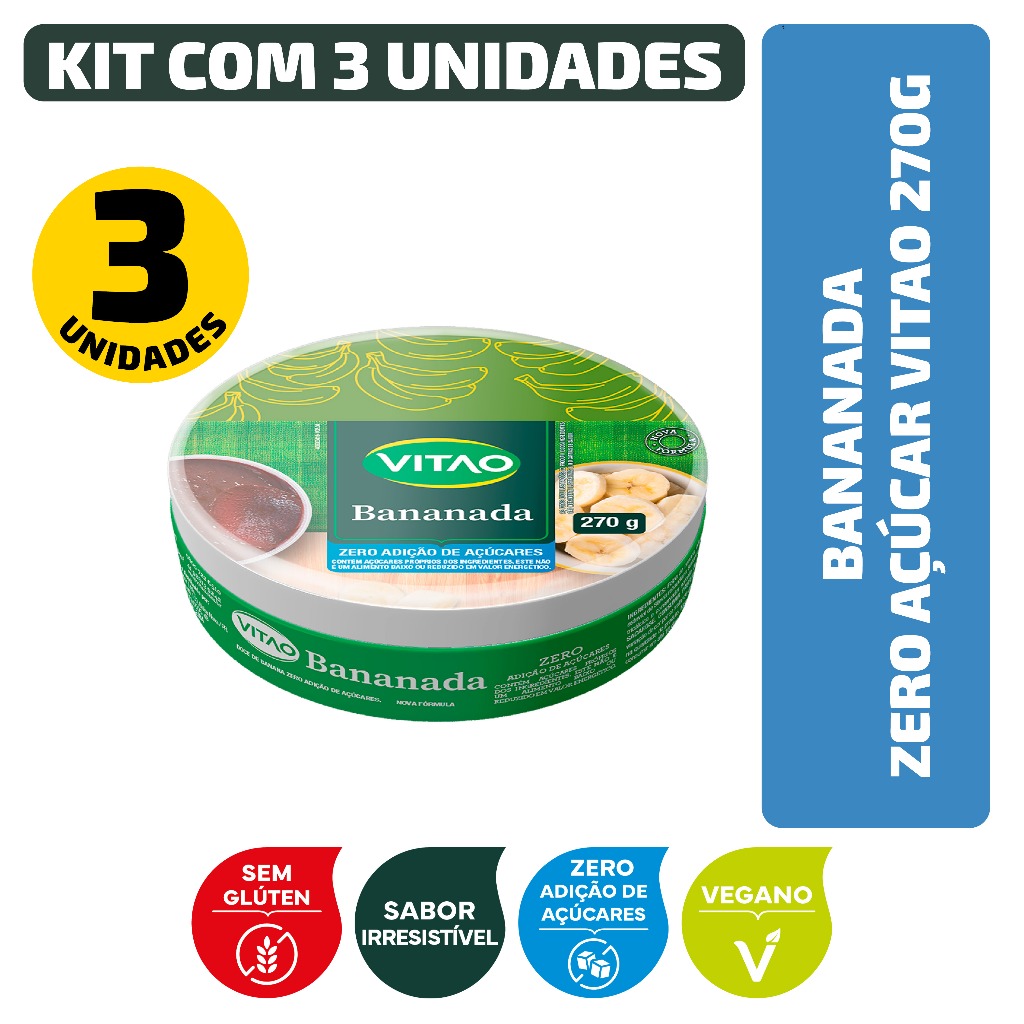 A bananada em pote sem açúcar da Vitao é uma opção deliciosa e saudável para quem busca um doce sem abrir mão do sabor. Feita com bananas selecionadas, essa bananada é produzida sem adição de açúcares, tornando-se uma escolha adequada para dietas com restrição de açúcar. Com uma textura macia e um sabor naturalmente adocicado, a bananada em pote da Vitao pode ser consumida diretamente ou utilizada como ingrediente em diversas receitas. Aproveite o sabor autêntico da banana de forma mais saudável com a bananada em pote sem açúcar da Vitao. INGREDIENTES: Polpa de banana, edulcorantes xarope de maltitol, ciclamato de sódio, sacarina sódica, glicosídeos de esteviol de Stevia rebaudiana Bertoni e sucralose, estabilizantes pectina cítrica e citrato de sódio, agente de firmeza fosfato tricálcico e conservador sorbato de potássio. NÃO CONTÉM GLÚTEN. DIABÉTICOS: CONTÉM GLICOSE, FRUTOSE E SACAROSE. SEM GLÚTEN, ZERO ADIÇÃO DE AÇÚCARES, VEGANO.