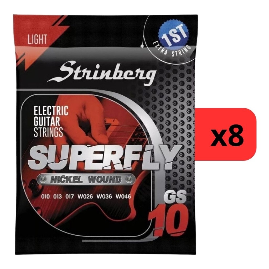 Kit 8 Encordoamento Strinberg Para Guitarra GS10 - 6 Cordas O Kit 8 Encordoamentos Strinberg para Guitarra GS10 de 6 cordas é a escolha perfeita para elevar o desempenho da sua guitarra. Com qualidade e durabilidade excepcionais, esses encordoamentos proporcionam um som claro e vibrante, permitindo que você explore todo o potencial do seu instrumento. Seja para tocar acordes encorpados ou solos expressivos, o Kit 2 Encordoamentos Strinberg GS10 garante uma resposta precisa e um tom consistente. Renove o som da sua guitarra e adicione um toque profissional às suas apresentações com esses encordoamentos confiáveis e de alta qualidade. Especificações Técnicas: • Modelo: GS-10 • Espessuras: 1º - .010 / 2º - .013 / 3º - .017 / 4º - .026 / 5º - .036 / 6º - .046 • Revestimento de bordões: Níquel. Conteúdo da Embalagem: • Kit 8 Encordoamento Strinberg Para Guitarra GS10 - 6 Cordas • Manual e Certificado de Garantia Importante: • Garantia de 90 Dias. • Valor Kit.