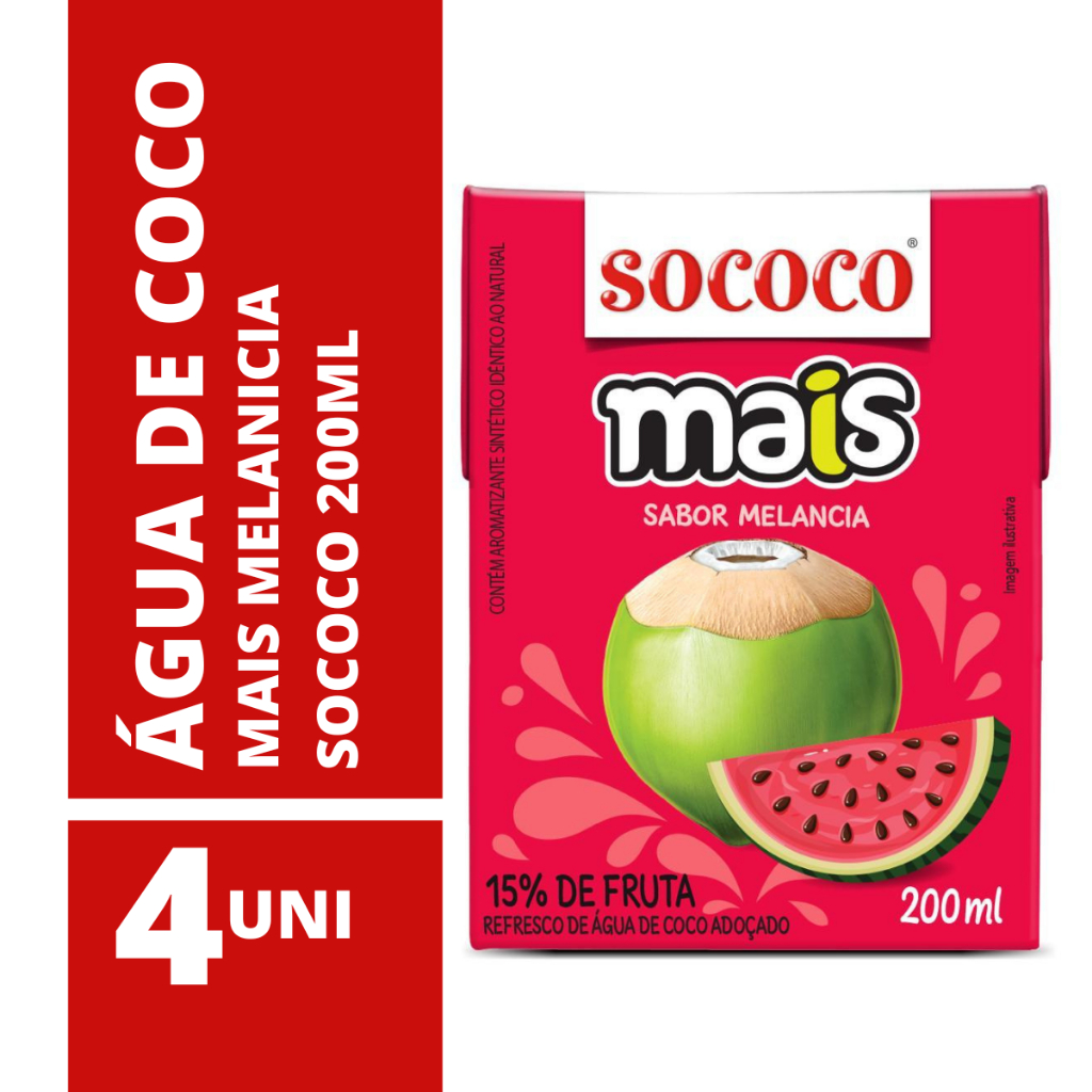 Água de Coco Mais Melancia Sococo 200ml - 4 Unidades | Food & Beverages