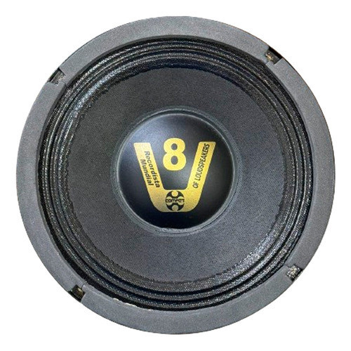 Alto Falante Compet 8 Pol 200w 4 OhmsEspecificações Técnicas:Potência Máxima: 200wPotência Musical: 400wImpedância Nonimal: 4 OhmsResposta de Frequência: 90 ~ 8.000 HzSensibilidade: 98,1 dB/SPLBobina SimplesCarcaça: ChapaResistência: 6.0 Ohms/VccÁrea do Cone: 0,028 S.qmFrequência de Ressonância: 132,147 HzVolume Equivalente: 11,521 LQ Mecânico: 8,351(Qms)Q Elétrico: 0,898(Qts)Q Total: 0,851(Qts)Produto BL: 7,011 TMNo(Referência de Efeciência): 2,8%Compilância(CMS): 152,71 uM/NExcursão Cone sem Distorção(X MAX): 3,5 mmDensidade do Fluxo no Gap: 10,150 GaussDiâmetro Aprox. do Imã: 12 CmAltura Aprox. do Imã: 3,50 CmPeso: 1,58 KgDimensões Aproximadas(DxP): 20,5x8,5 Cm
