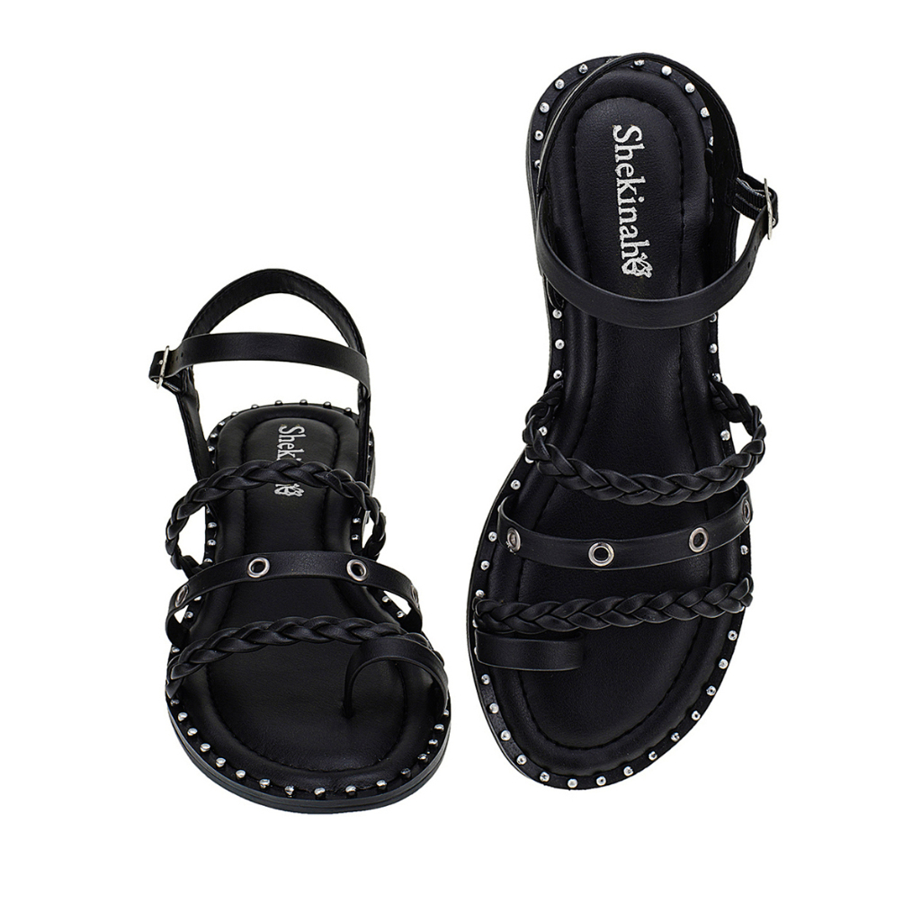Nossa sandália rasteira com tachas , cravinhos e tiras é a escolha perfeita para quem busca unir estilo e conforto. Seu design leve e moderno traz tiras ajustáveis com detalhes em taxas e cravinhos, que adicionam um charme extra e um toque de ousadia. A palmilha super confortável proporciona maciez e suporte aos pés, ideal para longos períodos de uso. Combinando perfeitamente com looks casuais, essa sandália é versátil e ideal para o dia a dia, seja em passeios ou compromissos informais. **** INFORMAÇÕES TÉCNICAS *** + Cor – Cor Original da Foto do Produto. + Material – Sintético P.U + Peso - 400 g + Solado – Antiderrapante + Palmilha – Conforto com aplique da logo. + Numeração: será enviada pelo critério de escolha + Caixa embalagem: Cada par será enviado em sua caixa individual. + Frete: Conforme regras do Shopee. *** Tabela de medidas *** Numeração em Centímetros 34 ----------------------------- 22,5 35 ----------------------------- 23,5 36 ----------------------------- 24,0 37 ----------------------------- 24,5 38 ----------------------------- 25,5 39 ----------------------------- 26,0 40 ------------------------------26,5