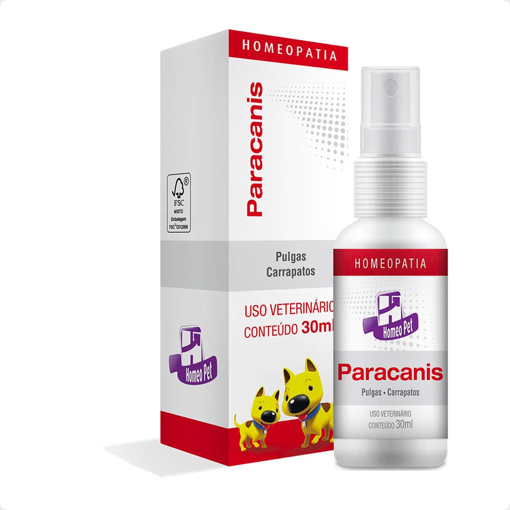 Homeopatia Paracanis Homeo Pet Real H - 30 mL - Controle dos parasitas em cães; - Pulgas, Bernes, Carrapatos, Mosca das orelhas, Vermes; - Garante resultados mais positivos; - Produzido com matérias-primas naturais; - Produz mais conforto e bem estar ao seu pet. Detalhes O Sistema de Terapia Real H Homeo Pet Paracanis - 30 mL é um produto homeopático que previne e controla infestações por endoparasitas, ectoparasitas e hemoparasitas. Dicas Especiais De uso oral, colocar as doses indicadas na água para ele beber ou sobre os alimentos (rações, leite, etc), borrifando o produto imediatamente antes de oferecer o alimento ao animal. Pode-se utilizar o produto diretamente na mucosa oral do animal, expor a parte interna da bochecha (mucosa bucal) e dirigir as borrifadas sobre ela, facilitando o contato direto do medicamento. Cães de pequeno porte 01 borrifada, 03 vezes ao dia. Cães de médio porte 02 borrifadas, 03 vezes ao dia. Cães de grande porte 03 borrifadas, 03 vezes ao dia. A freqüência e número das doses podem ser alteradas a critério do Médico Veterinário. Armazenar o produto em temperatura ambiente, ao abrigo do sol e calor (fogão). Manter sempre afastado de fontes de radiações eletromagnéticas (rádio, telefone, microondas, etc) bem como de produtos químicos (alvejantes, desinfetantes, etc). Indicação: Cachorros Porte/Raça: Raças Pequenas, Raças Médias, Raças Grandes Idade: Adultos Composição: Cina anthelminthica 9 CH.................................... 9,09 mL Punica granatum 6CH.......................................... 9,09 mL Cuprum oxidatum 6 CH........................................ 9,09 mL Ferrum metalicum 9 CH........................................ 9,09 mL Spigelia anthelmia 9 CH........................................ 9,09 mL Sulphur 9 CH.......................................................... 9,09 mL Chinchona officinallis 6 CH................................... 9,09 mL Sulpur Iodatum 6 CH.............................................. 9,09 mL Psorinum 9 CH....................................................... 9,09 mL Pulex canis 6 CH.................................................... 9,09 mL Rhipicephalus sanguineus 9 CH............................ 9,09 mL Véiculo (Q.S.P)........................................................ 100,0 mL Apresentação: 30 mL