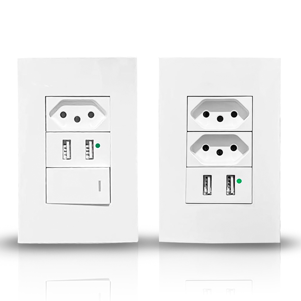 COMERCIAL VIPASA DISTRIBUIDORA Tomada Universal 2 Entradas USB Carregar Celular Com Placa 10A 250W Profissional Moderno Casa Tomada Universal 2 Entradas USB + Tomada C/ Placa 10A 250W A Tomada USB é uma Tomada de Parede Universal com 02 Portas USB que serve para carregar aparelhos eletrônicos CARACTERÍSTICAS DA TOMADA DE PAREDE USB: - Cor: Branco - Tensão de Entrada: Bivolt: 110v / 220v - Saída USB:5V 2.100mAh cada Modelos: • Tomada Universal 2 Entradas USB + 1 Tomada C/ Placa 10A 250W • Tomada Universal 2 Entradas USB + 2 Tomadas C/ placa 10A 250W A Tomada Universal com 2 Entradas USB é um dispositivo elétrico projetado para fornecer energia elétrica para dispositivos eletrônicos e também carregar dispositivos com conexão USB. Tomada Universal: Possui dois orifícios padrão que aceitam plugues de dois pinos (padrão brasileiro) e são compatíveis com uma variedade de dispositivos elétricos, como eletrodomésticos, carregadores de celular, lâmpadas, entre outros. 2 Entradas USB: Além das tomadas convencionais, esta tomada também possui duas portas USB embutidas, que permitem carregar dispositivos eletrônicos diretamente a partir da tomada, sem a necessidade de adaptadores ou carregadores separados. Essas portas USB são compatíveis com uma variedade de dispositivos, como smartphones, tablets, dispositivos de áudio, entre outros. Capacidade e especificações: A tomada tem uma capacidade de 10A e 250W, o que significa que pode suportar uma carga elétrica máxima de 10 amperes e 250 watts. Isso a torna adequada para uso com uma variedade de dispositivos eletrônicos de baixa potência. Placa: A tomada é acompanhada por uma placa que pode ser montada na parede ou em uma caixa de montagem elétrica padrão, tornando-a fácil de instalar em qualquer ambiente residencial, comercial ou industrial. Essa tomada oferece conveniência adicional ao fornecer uma maneira fácil e acessível de carregar dispositivos USB sem a necessidade de adaptadores adicionais, além de fornecer energia elétrica para dispositivos padrão. COMERCIAL VIPASA DISTRIBUIDORA