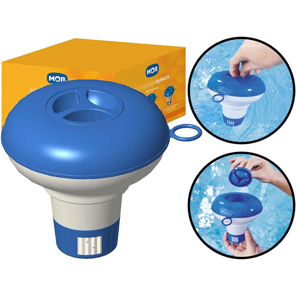 Flutuador Químico Mor O Flutuador Químico Mor, é a solução definitiva para manter sua piscina sempre limpa e com água cristalina com o menor esforço possível. Com este flutuador, você resolve problemas comuns como a dificuldade de manter os níveis de cloro ideais e a necessidade constante de ajuste manual. Acessório ideal para que você complete o processo de manutenção da sua piscina e deixe-a prontinha para o banho! Características: > É retrátil e possui regulagem de entrada e saída de água; > Mantém os níveis de cloro estáveis, garantindo água limpa e segura com muito menos esforço; > Design flutuante que distribui os produtos químicos de maneira uniforme, economizando seu tempo e evitando ajustes constantes. Especificações Técnicas: > Material: polipropileno; > Dimensões do produto (C x L x A): 12cm x 12cm x 12cm. - Marca: Mor - Garantia: 90 dias contra defeitos de fabricação Vantagens de comprar na Brester: - Produto a pronta entrega. - Produto novo, com garantia de fábrica. - Nota fiscal para Pessoa Física e Pessoa Jurídica.