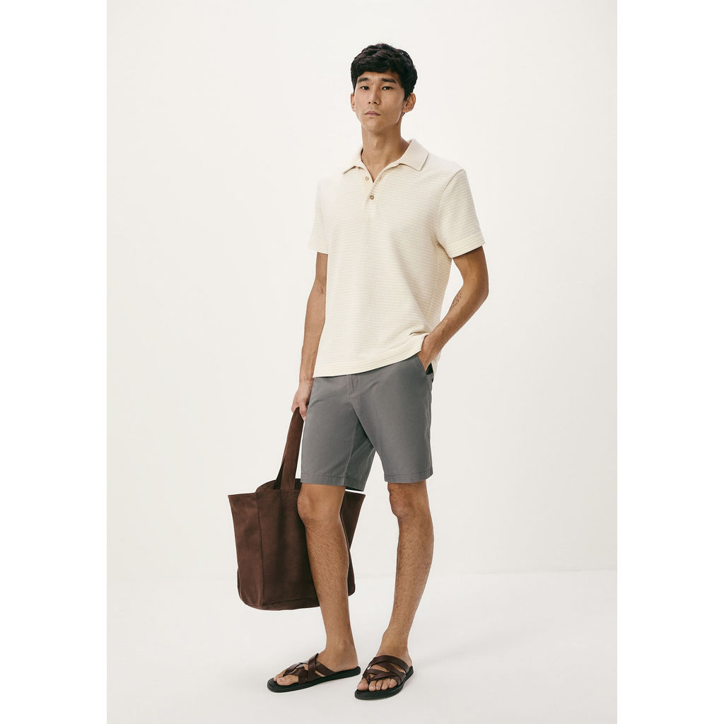 Bermuda básica masculina Hering, confeccionada em tecido de algodão. Possui modelagem chino com referências de alfaiataria e recortes mais despojados. Possui cós intermediário, fechamento por botão e zíper, passante para cinto e bolsos funcionais. Composições com camisas são a aposta para dias descontraídos.