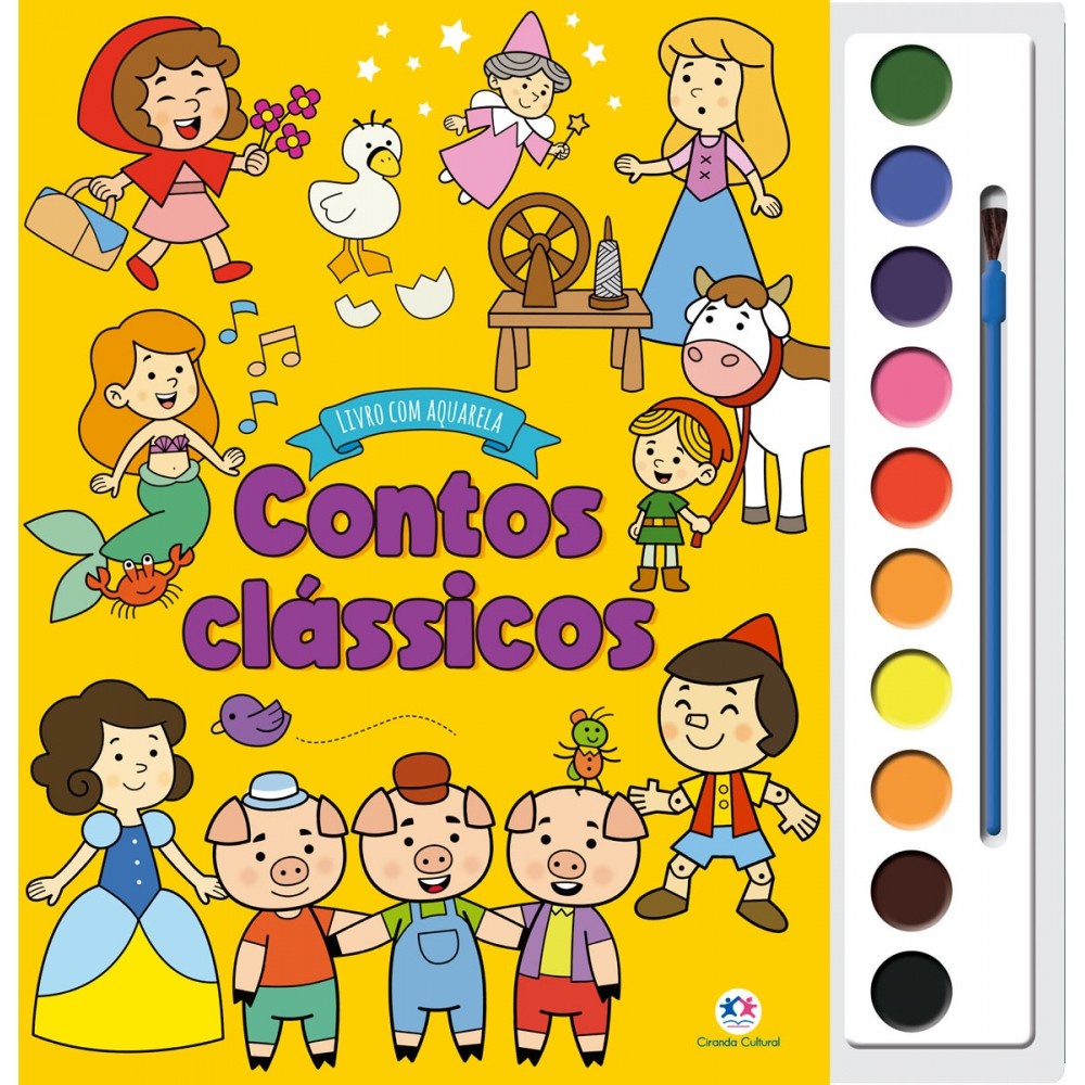 Encante-se com os contos clássicos e os personagens que atravessaram gerações, como Branca de Neve e seus amigos anões, as aventuras incríveis de João e o pé de feijão, a fuga dos Três Porquinhos, perseguidos pelo lobo mau, e outros. Embarque nessas incríveis histórias e divirta-se pintando as ilustrações com as aquarelas que acompanham este livro!_x000D_ _x000D_ Editora: Ciranda Cultural_x000D_ Edição: 1, 2023_x000D_ Autor: Ciranda Cultural _x000D_ Ilustrador: Dois de Nós_x000D_ Idioma: Português_x000D_ Páginas: 16_x000D_ Dimensões: L 27.00 x A 28.00 x E 0.61_x000D_ ISBN: 9786526103821_x000D_ Coleção: Livro com aquarela_x000D_ Linha Editorial: Ciranda Cultural - Livro-brinquedo_x000D_ Faixa Etária: + 6 anos_x000D_ Assuntos (tags): Colorir, Atividades, Contos clássicos, Contos de fadas, Diversão, Pintar_x000D_ BISAC: Jogos & Atividades / Livros de Colorir_x000D_ Linha de Produto: Aquarela_x000D_ Encadernação: Grampeado_x000D_ Acabamento: Laminação brilho_x000D_ Material: Papel
