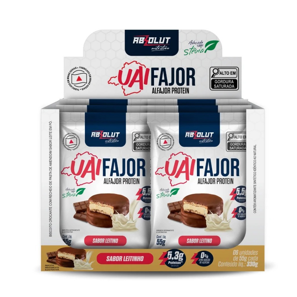 De minas para o mundo! 🌎❤️⚡️ Alfajor Chocolate Sem Açúcar Com Whey Protein O docinho pós almoço está liberado. 🤤❤️ São três sabores incríveis para todo mundo aproveitar: Morango, Leitinho, Chocotela. 😋⚡️ ✅ Uma sobremesa SEM AÇÚCAR ✅ Zero gordura trans ✅ 5g de proteína 🔍 CADA DISPLAY VEM COM 06 UNIDADES DE 55G – TOTAL 330G 🔍Zero lactose? Não, o produto contém derivados do leite.