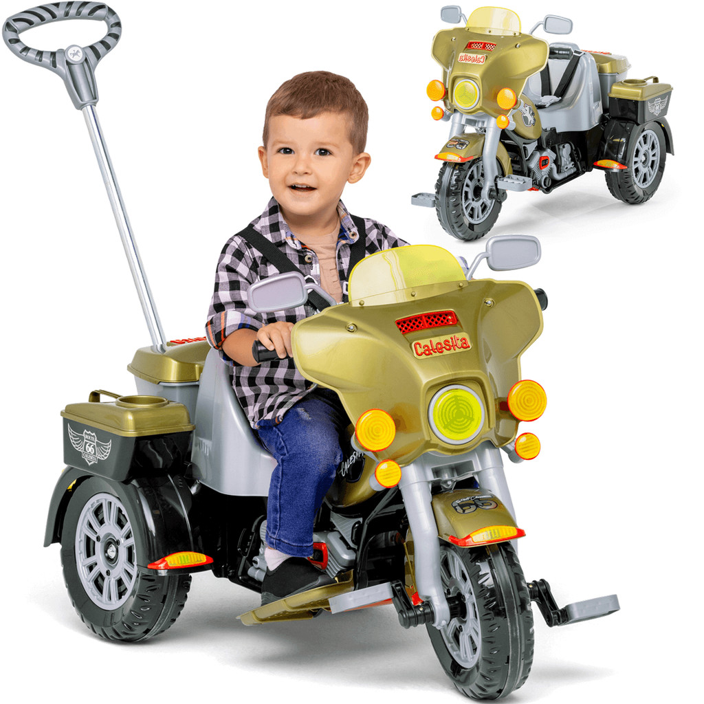 Carrinho de Passeio e Pedal Calesita Moto Street Classic Está procurando um presente INESQUECÍVEL que vai encantar o seu bebê? A Maçã Verde Baby apresenta o Carrinho de Passeio e Pedal Street Classic da Calesita, um brinquedo 2 em 1 que acompanha o crescimento da criança com conforto, segurança e muito estilo! Vale a pena comprar o Carrinho de Passeio e Pedal Street Classic da Calesita? O Street Classic é um brinquedo perfeito para bebês a partir de 12 meses e suporta até 30kg! Inspirado no design das motos clássicas, ele traz um visual estiloso e robusto, garantindo passeios cheios de diversão e aventura. Com um capacete de brinquedo incluso, as crianças se sentem verdadeiros motociclistas! Na fase inicial, pode ser utilizado com empurrador, aro de proteção e apoio para os pés, garantindo total segurança. Quando o bebê crescer, basta remover os acessórios para que ele pedale sozinho e viva novas aventuras! Função passeio: segurança e conforto para os pequenos Nos primeiros meses de uso, o Street Classic pode ser utilizado na função passeio, onde os pais conduzem o brinquedo com a haste empurradora. Ele possui aro de proteção e apoio para os pés removíveis, garantindo que a criança fique bem acomodada e segura durante os passeios. Além disso, o empurrador conta com suporte para bolsa, tornando os passeios ainda mais práticos para os pais! Função pedal: independência e diversão garantida! Quando a criança estiver pronta para pedalar sozinha, basta remover o aro de proteção, o apoio de pés e o empurrador. O Street Classic conta com pedais confortáveis, buzina e rodas com borracha antiderrapante para maior estabilidade e segurança. Com um design cheio de detalhes, ele tem retrovisores de brincadeira, faróis decorativos e até um capacete de brinquedo para deixar a experiência ainda mais realista! Cores e modelos disponíveis O Carrinho de Passeio e Pedal Street Classic da Calesita está disponível nos modelos Street Classic (Dourada) e Street Classic Pop (Rosa). Gostou? Aproveite e garanta agora mesmo o seu Carrinho de Passeio e Pedal Street Classic da Calesita aqui na Maçã Verde Baby! Ficamos no aguardo de sua compra! Neste anúncio especial da Maçã Verde Baby, você vai levar: 1 (um) Carrinho de Passeio e Pedal Calesita Street Classic 1 (uma) Haste/Empurrador 1 (um) Par de Apoio de Pés 1 (um) Capacete de brinquedo 1 (um) Manual de Instruções Quer saber mais detalhes sobre o Carrinho de Passeio e Pedal Street Classic da Calesita? Carrinho de Passeio e Pedal Calesita Street Classic Brinquedo 2 em 1: acompanha o crescimento do bebê Função passeio: empurrador, aro de proteção e apoio para os pés Função pedal: basta remover o empurrador, aro de proteção e apoio de pés para que a criança pedale sozinha Possui design inspirado em motos clássicas Acompanha capacete de brinquedo Detalhes incríveis, com retrovisores e faróis decorativos Assento anatômico com cinto de segurança de 3 pontos Idade recomendada: +12 meses Peso máximo suportado: 30kg Composição: Polietileno, plástico, metal e borracha Certificado de Registro INMETRO nº 002042/2021 Dimensões: Sem Haste: Altura 63,1 cm x Largura 53,6 cm x Comprimento 89,2 cm Com Haste: Altura 91,5 cm x Largura 53,6 cm x Comprimento 89,2 cm Peso: 8,75kg