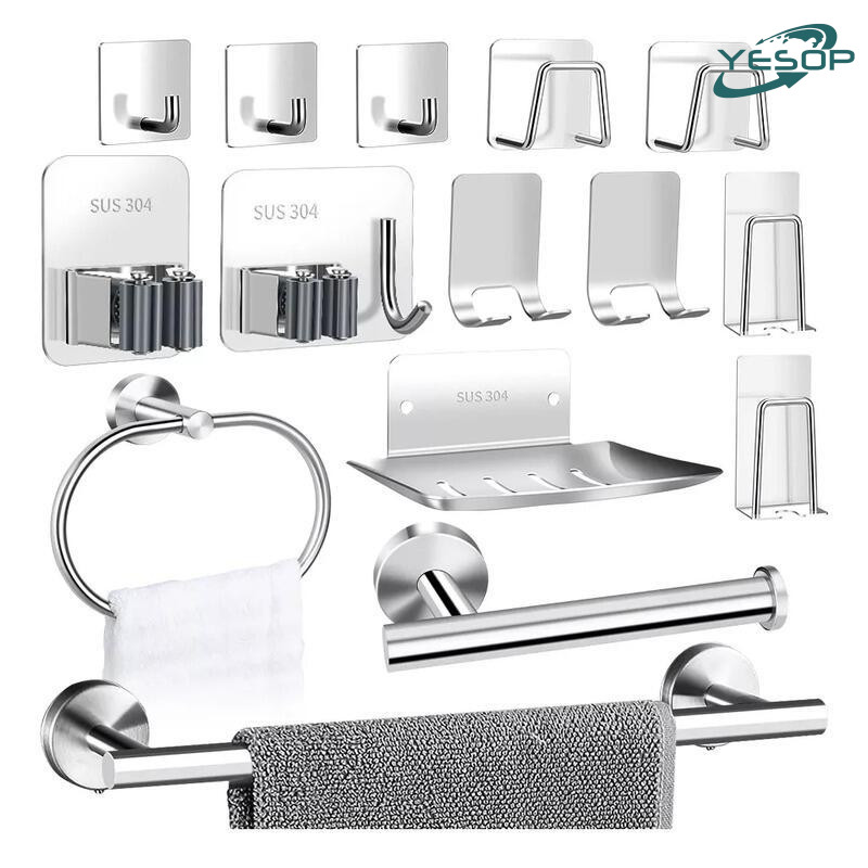 Conjunto de acessórios de banheiro de 15 peças Escovada contendo: - 1 Toalheiro, - 1 Suporte para papel higiênico, - 1 Anel de toalha, - 2 Suporte para barbeador, - 2 Suporte para escova de dentes, - 2 Suportes para esponja, - 3 Gancho de borracha, - 1 Suporte para esfregão - 1 Suporte para esfregão com gancho, -1 Bandeja de sabão. Um conjunto completo de organizadores Todos os seus produtos de higiene pessoal. Características: Adequado para decoração de diferentes estilos. Projetado com linhas elegantes e simples, o conjunto de toalheiros de banheiro trará um toque de design moderno à sua casa. Materiais de alta qualidade: Feitos de aço inoxidável 304 espesso, esses acessórios protegem contra corrosão e ferrugem no ambiente úmido. Com o acabamento metálico Escovado de uma beleza incomparável evitando manchas e arranhões. Adicionados um toque moderno ao seu banheiro e as bordas chanfradas protegem seu corpo contra arranhões. 5. Perfeito para qualquer lugar: Linhas limpas e construção robusta, você pode usar em vários ambientes diferentes tornando a sua casa mais bonita e moderna. Material: aço inoxidável sus304 Cor: acabamento preto fosco Instruções de instalação: Perfuração/Autoadesivo Perfuração: 1. Marque a posição dos furos de instalação com uma caneta. 2. Faça furos na parede com uma broca de 6 mm. 3. Usando um martelo para acertar a âncora nos buracos 4. Fixe a junta dos produtos à parede com parafusos (incluídos) 5. Use a ferramenta para instalar as outras peças dos produtos. A instalação está pronta!