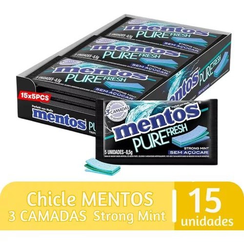 Chiclete Mentos Pure Fresh 3 Camadas Hortelã Forte Van Melle Com 15 Unidades - 18% OFF | Food & Beverages