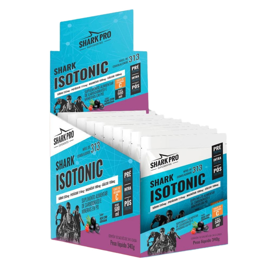 Shark Isotonic é um suplemento em pó formulado para a reposição rápida de carboidratos e eletrólitos durante e após atividades físicas intensas. Com uma composição balanceada de sódio, potássio, magnésio e cálcio, ele auxilia na hidratação, na recuperação muscular e na prevenção de câimbras. Além disso, é enriquecido com vitamina C, que contribui para a proteção contra os danos causados pelos radicais livres. Indicado para uso pré, intra ou pós-treino, o produto tem nível de osmolalidade de 313, ideal para absorção eficiente pelo organismo.