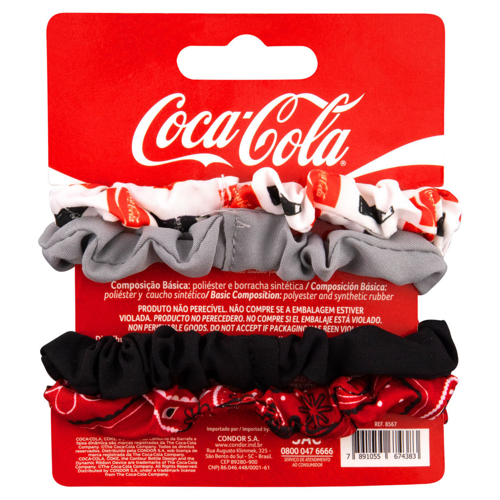 Mais variedade e estilo com o Kit Elástico para Cabelo Coca-Cola Condor! Com 4 elásticos em diferentes cores, o kit é ideal para variar nos penteados ou dar um toque divertido ao visual. Além de estilosos, os elásticos são superconfortáveis, não puxam os fios e deixam seus looks cheios de personalidade. Uma explosão de moda e nostalgia no seu acessório diário!