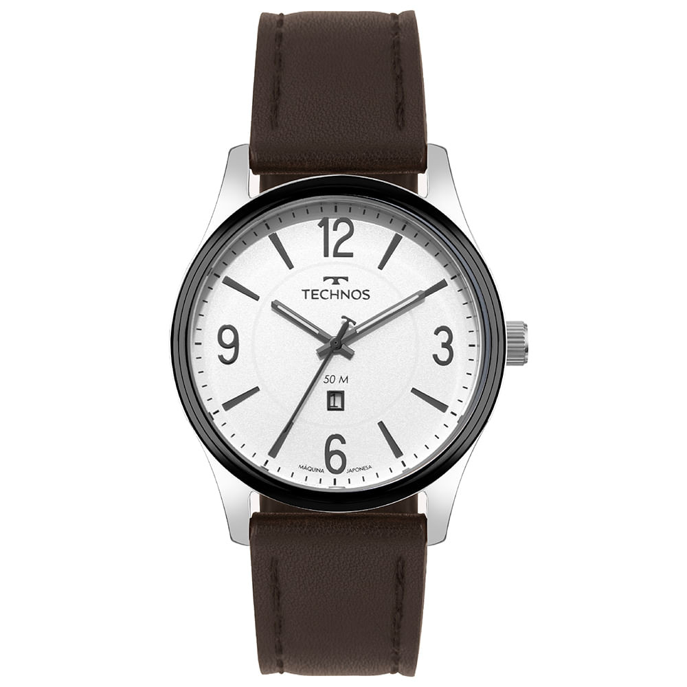 Relógio Technos Steel apresenta novo modelo de design versátil, com maquinismo analógico com data e mostrador de fácil leitura, que conta com numeração arábica. Com pulseira de couro legítimo na cor marrom, ele conta com caixa e mostrador na cor prata. Produto 100% em aço inoxidável, com máquina quartz japonesa Miyota e resistência à água de 50 metros.