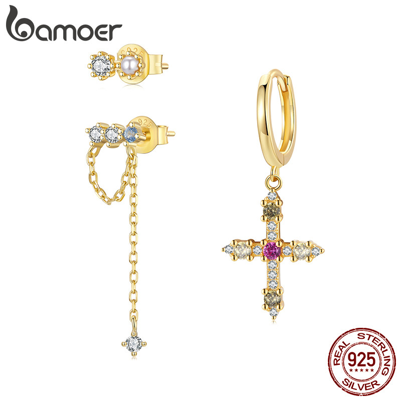 Bamoer 925 Sterling Sliver Brincos Cruz Conjunto Joias Presentes Para Mulheres
