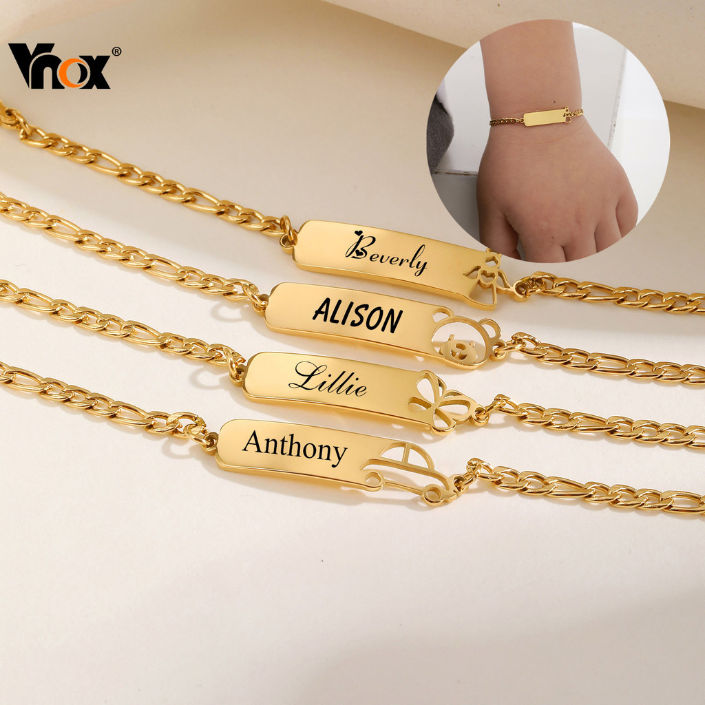 Vnox Anjo Borboleta Carro Urso Gravado Pulseira Para Bebê , Fofa De Aço Inoxidável Ouro 18K , Presente De Joias Da Moda - 50% OFF | Baby & Kids Fashion