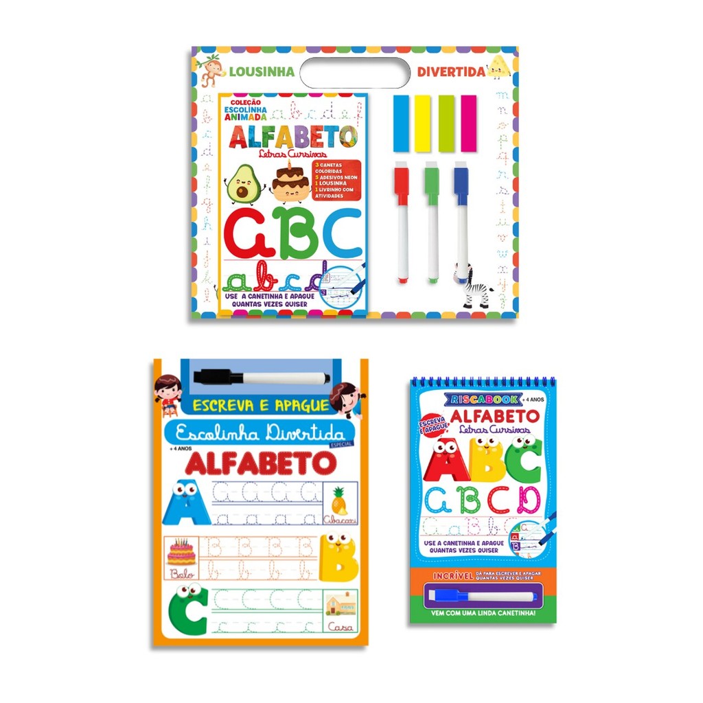 O Combo Escolinha Divertida Alfabeto é perfeito para ensinar as letras de uma forma divertida! Com 3 livros interativos, cheios deatividades envolventes, as crianças aprendem o alfabeto de maneira lúdica e educativa. Um jeito encantador de estimular a alfabetização e a curiosidade dos pequenos!