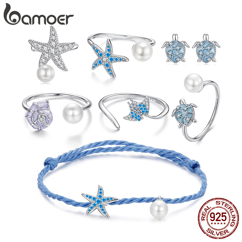 Bamoer 925 Prata Esterlina Anel Ajustável Tartaruga Marinha Estrela Do Mar Requintado Moda Jóias Presente Feminino | Fashion Accessories