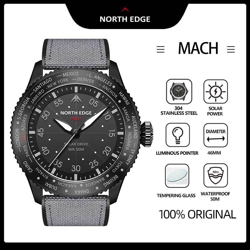 NORTH EDGE Mach Solar Recarregável De Aço Inoxidável À Prova D'água Relógio Masculino D'água Para Esportes Ao Ar Livre Aventura Militar Estilo De Impacto Ponteiro Fluorescente Resistente A 46 - 50% OFF | Watches