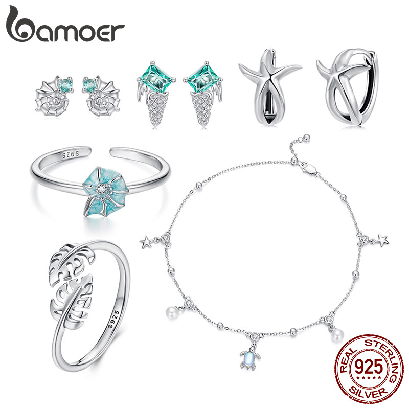 Bamoer 925 Prata Esterlina Anel Concha Estrela Do Mar Tartaruga Folha Moda Jóias Presente Feminino | Fashion Accessories
