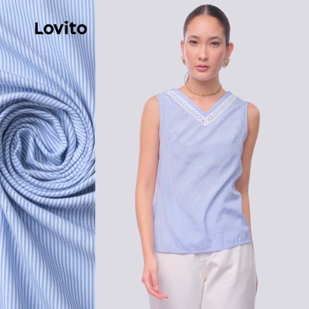 ✅DESTAQUES -❤️Gola Contrastante -❤️Renda -❤️Leve e Respirável ✅DESCRIÇÕES Estampa: Listrada Estilo: Casual Tipo de Vestuário: Blusa Tamanho Plus Size: Não Material: Poliéster Composição: 55% Poliéster, 45% Algodão Tipo de Caimento: Regular Transparência: Não Elasticidade: Sem Elasticidade Região de Origem: Brasil ✅O PACOTE INCLUI 1x Blusa ✅INTRODUÇÃO DA LOVITO Lovito é uma marca emergente que acredita no poder das garotas, comprometida em oferecer roupas da moda e acessíveis para diferentes estilos, necessidades e identidades. Acreditamos que a moda deve ser divertida, libertadora e te fazer sentir incrível. Afinal, o melhor acessório de qualquer look é a autoconfiança. ✅NOTAS DE COMPRA Compare suas medidas com nossa tabela disponível no site. Lembre-se de que, por serem feitas manualmente, as medidas podem variar de 1 a 2 cm. As cores dos produtos também podem ter pequenas diferenças em relação às fotos, dependendo da iluminação e das configurações do seu dispositivo. Siga nossa loja e conheça novos itens e as melhores ofertas para você!! Se você tiver alguma dúvida, converse conosco e responderemos o mais rápido possível.😊