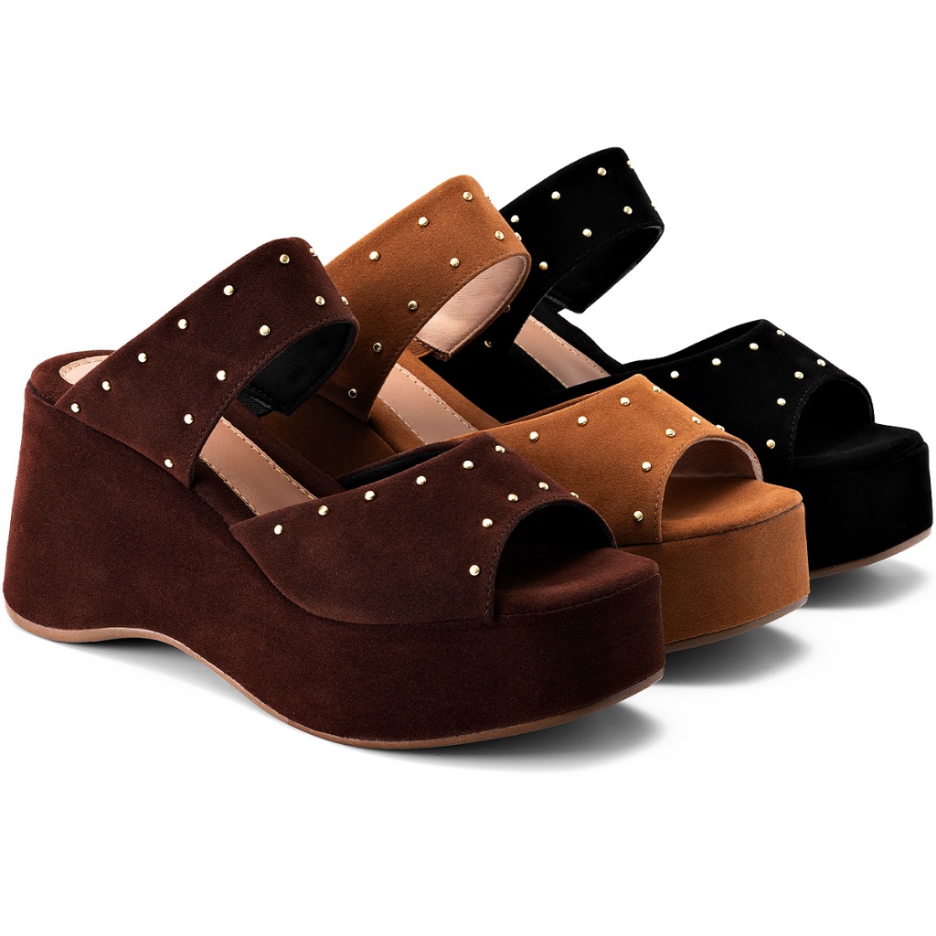 Com visual marcante e muito conforto, essa anabela de camurça em tom terroso traz um ar moderno e despojado para o look. As tachas douradas aplicadas nas tiras largas adicionam um toque de atitude, enquanto o salto plataforma garante estabilidade e estilo. Ideal para produções urbanas e cheias de personalidade. ..:::.. ESPECIFICAÇÕES DO PRODUTO ..:::.. *Material Externo - Camurção *Material Interno - Napa Sintética *Material da Sola - PU, Antiderrapante, Não escorrega, Não faz barulho. *Altura do Salto - 9,0 cm. *Altura da Frente - 4,0 cm. *Palmilha - Confortável com aplique da logo. Medida aproximada dos pés para cada numeração: Tamanho 34 --- 23,0 cm Tamanho 35 --- 24,0 cm Tamanho 36 --- 24,5 cm Tamanho 37 --- 25,0 cm Tamanho 38 --- 25,5 cm Tamanho 39 --- 26,0 cm Tamanho 40 --- 27,5 cm SOBRE A LUMISS: Desde 2018, brilha no coração da Lumiss a inovação para calçados femininos. Nascida como Amorelle, a marca é fruto do sonho de um visionário que sempre acreditou na possibilidade de fabricar calçados que surpreendessem o mercado, tanto pela variedade quanto por seus preços acessíveis. Com muito trabalho em família, essa ideia foi levada adiante, fortalecendo uma marca que hoje é referência nacional em calçados femininos, com presença marcante nos marketplaces e mais de dois milhões de pares já entregues em todo o Brasil. Comprometida com cada cliente, a Lumiss oferece as maiores tendências do mundo da moda a partir de materiais que garantem conforto, qualidade, sofisticação e estilo aos pés da mulher brasileira, encantando até mesmo os perfis mais exigentes. Além disso, a empresa se preocupa em oferecer a melhor experiência de compra, com total segurança e praticidade. Lumiss é mais que uma marca. É uma ideia que chegou para mostrar que todas as mulheres podem brilhar e ser ainda mais lindas e confiantes com calçados que as valorizam em todos os aspectos.