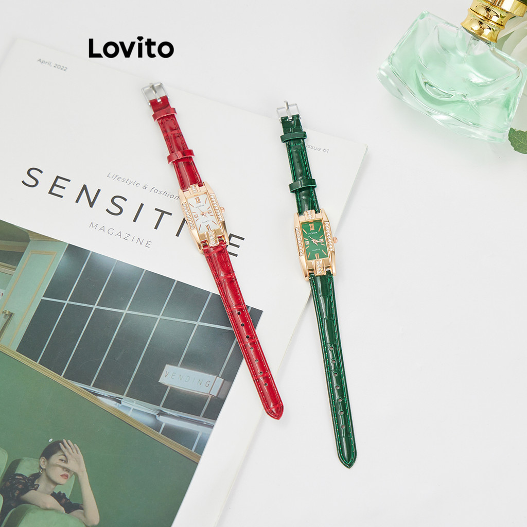 (Trendy) Lovito Relógio Casual De Quartzo Simples E Básico De Quartzo Para Mulheres L69AD052 (Vermelho/Verde) - 47% OFF | Watches