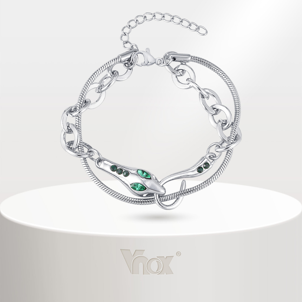Vnox Pulseira De Camada Dupla Em Forma De Cobra De Aço Inoxidável Para Mulheres E Homens , Moda Hip Hop Ajustável Punk J - 50% OFF | Fashion Accessories