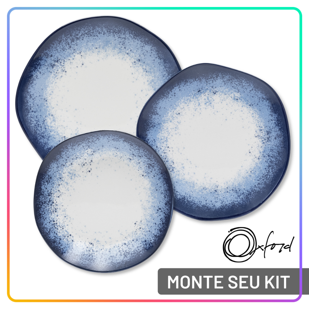 Jogos de pratos rasos, fundos e de sobremesa Ryo Galápagos Oxford ⚠️ Monte seu kit como preferir: escolha entre prato raso, fundo ou de sobremesa, defina a quantidade de cada item e adicione ao carrinho. Você pode repetir esse processo para compor seu aparelho de jantar completo. Depois, é só revisar tudo e finalizar a compra. Com formas orgânicas e inspiração wabi-sabi, a coleção Ryo Galápagos da Oxford celebra a harmonia entre fogo e água, com esmalte brilhante, filete pintado à mão e tons de azul que remetem à paisagem do arquipélago. ✅ Pode ser levado ao micro-ondas e a lava-louças Pesos e medidas aproximadas de cada unidade (Altura x Largura) ➡️ Prato raso: 0,800 kg – 3 cm x 27,5 cm ➡️ Prato fundo: 0,485 kg – 4 cm x 22,5 cm ➡️ Prato de sobremesa: 0,380 kg – 2,5 cm x 21,5 cm ❌ Não leve o produto ao forno nem o submeta à chama direta Imagens meramente ilustrativas. As tonalidades podem variar de acordo com estoque, seu monitor ou até mesmo com a percepção dos seus olhos.