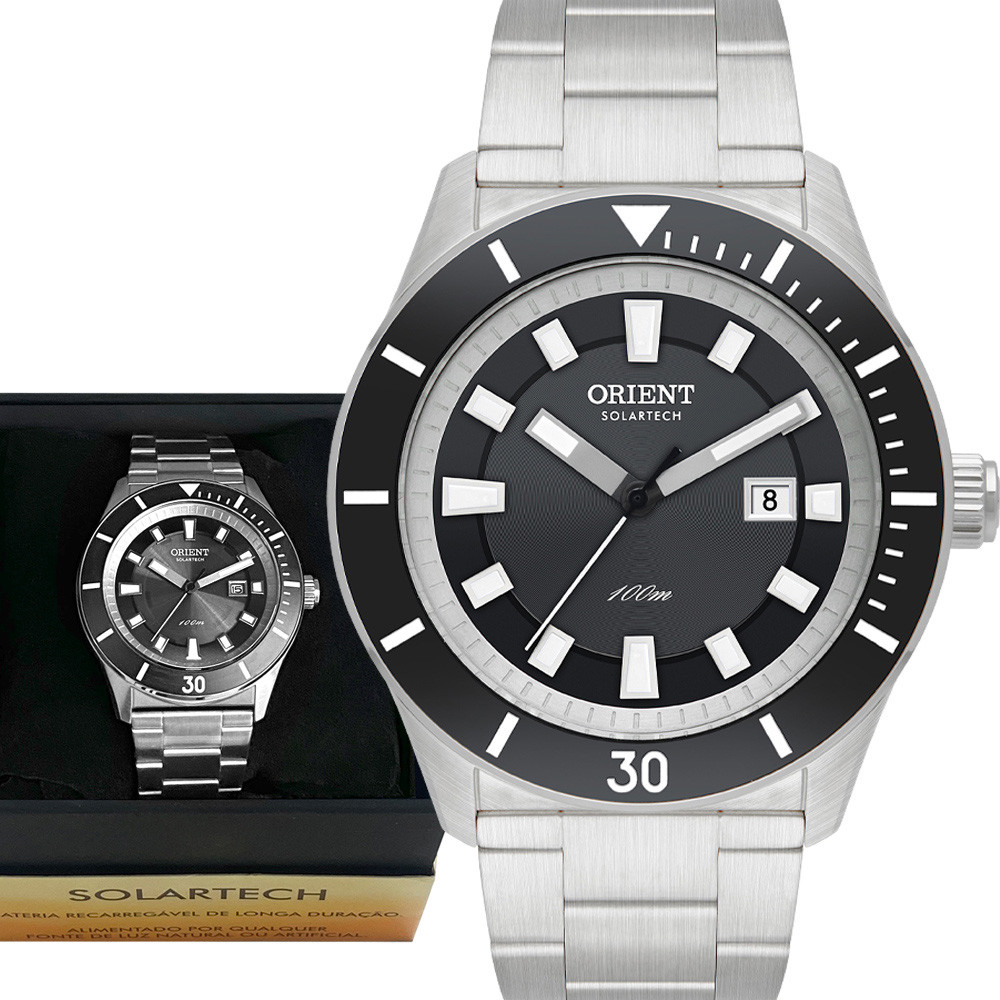 Você sabe o que é um ORIENT SOLARTECH? O sistema SOLARTECH , é uma tecnologia Ortient na qual o relógio é alimentado por luz solar ou artificial. O relógio dispensa trocas de bateria, pois a tecnologia SOLARTECH carrega o relógio automaticamente. Os modelos SOLARTECH possuem um mecanismo interno que captura a luz natural ou artificial e transforma em energia.