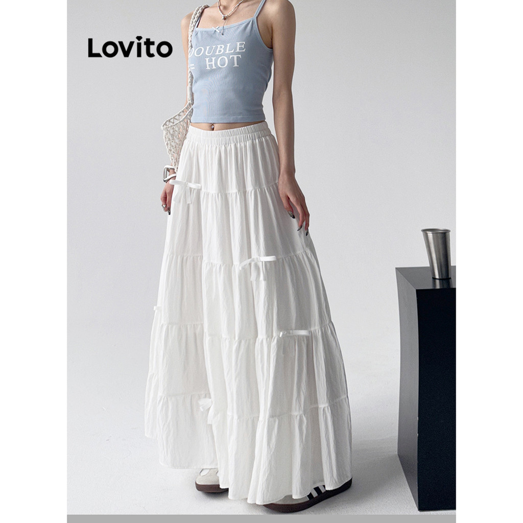 (Trendy) Lovito Saias Românticas Com Laço Liso E Babados Em Cascata Para Mulheres L98AD095 - 30% OFF | Women Clothes