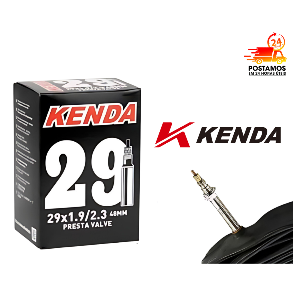 Câmara de Ar Kenda Aro 29 x 1.9/2.3 Válvula Presta 48mm Bico Fino A Câmara de Ar Kenda Aro 29 é desenvolvida para ciclistas que exigem confiabilidade, durabilidade e alta performance em qualquer situação. Com válvula Presta (bico fino) de 48mm, é ideal para aros de perfil alto e garante vedação precisa, mantendo a pressão estável por mais tempo. Características Técnicas Marca: Kenda Aro compatível: 29 Medidas do pneu: 29 x 1.9 até 29 x 2.3 Válvula: Presta (bico fino) Comprimento da válvula: 48mm (ideal para aros de perfil médio e alto) Material: Borracha de alta qualidade Cor: Preto Compatibilidade Compatível com pneus MTB e híbridos na faixa de largura 1.9 a 2.3 polegadas. Indicada para bicicletas aro 29 de diversas marcas como Caloi, Oggi, Sense, Trek, Specialized, KSW, entre outras que utilizem pneu dentro da medida 29 x 1.9 até 2.3. Requer pedivela e rodas com furação para válvula Presta (bico fino). Não compatível com aros que aceitam apenas válvula Schrader (bico grosso). Benefícios Válvula Presta de 48mm: Enchimento prático e eficiente, excelente vedação. Resistência superior: Borracha de alta elasticidade, com ótima aderência para reparos com remendo. Desempenho confiável: Emendas invisíveis e espessura uniforme para pedaladas suaves e seguras. Uso versátil: Ideal para MTB, estradas de asfalto ou ciclismo urbano. Recomendações Verifique sempre se a medida do pneu está dentro da faixa 29 x 1.9 a 2.3. Recomenda-se instalação por profissional ou ciclista experiente para evitar danos à câmara e ao pneu. Mantenha a calibragem correta indicada pelo fabricante do pneu. Com a Câmara de Ar Kenda Aro 29 você tem a garantia de qualidade de uma marca reconhecida mundialmente pela durabilidade e inovação. Perfeita para quem busca segurança e performance em qualquer pedal. Obrigado por comprar na RM BIKES.