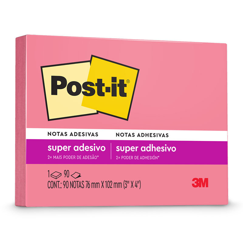 Bloco de notas super adesivas Post-it Rosa Positivo 76x102mm 90 folhas - 3M