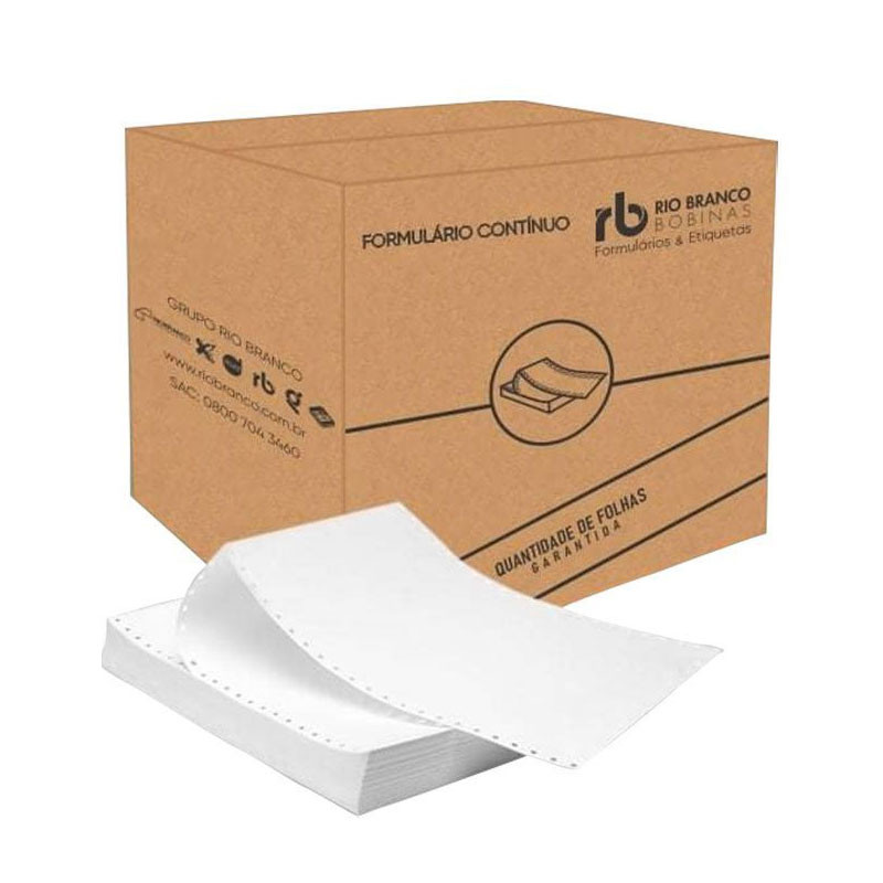 Formulário contínuo 80 colunas 1 via microsserilhado razão branco c/ 6000 fls 3073 Rio Branco - 20% OFF | Stationery