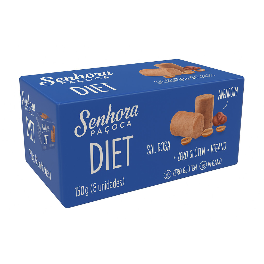 A Paçoca Diet Senhora é feita com amendoim selecionado e sal rosa do Himalaia, sem adição de açúcar, glúten ou ingredientes de origem animal. Uma opção deliciosa e funcional para quem segue dieta com restrição de açúcar, estilo de vida low carb ou alimentação vegana. Perfeita para lanches práticos e saudáveis no dia a dia! ℹ Benefícios: ✅ Zero açúcar – ideal para dietas restritivas ✅ Com sal rosa do Himalaia ✅ Sem glúten – leve e segura para intolerantes ✅ Vegana – livre de ingredientes de origem animal ✅ Textura macia com sabor tradicional de paçoca ✅ Embalagem prática com 8 unidades individuais ℹ Ficha Técnica: ✅ Produto: Paçoca Diet ✅ Marca: Senhora Paçoca ✅ Ingredientes: Amendoim, sal rosa, adoçantes naturais ✅ Não contém glúten ✅ Vegano e low carb ✅ Embalagem: Caixa cartonada expositora