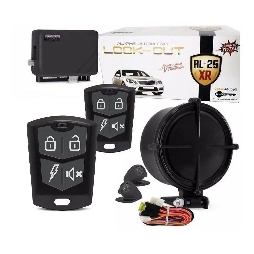 O Alarme AL 25 XR com 2 Controles possui diferentes modos de funcionamento integrados: - Modo alarme: monitoramento do sensor das portas, sensor ultrassom (INCLUSO) e chave de ignição. E, em caso de disparo, informa em qual ponto de monitoramento o alarme foi acionado - Modo resgate: em caso de roubo, após 15 segundos, dispara a sirene e após 50 segundos, realiza o bloqueio do veículo - Modo localizador: localiza o veículo em grandes estacionamentos através da sinalização da setas - Modo silencioso: onde você pode, a qualquer momento, acionar o alarme de forma silenciosa, somente com sinalização das setas - Informa a existência de alguma porta aberta com o toque de 3 bips na sirene - Possui um sistema de auto trava (trava todas as portas, em 8 segundos, após ligar a ignição) e auto destrava (destrava automaticamente as portas ao desligar a ignição). Após desativar o alarme, o seu rearme é automático se nenhuma porta for aberta dentro de 60 segundos Especificações Técnicas: - Marca: Look Out - Modelo: AL 25 XR - Liga e Desliga o Alarme com Sinal Visual ou Sonoro - Controle Remoto Auto Code com Alcance Médio de 30 Metros - Sistema de Bloqueio de Motor Temporizado - Travamento Automático das Portas com a Chave de Ignição Ligada - Rearme Automático - Sensor Ultrassom - Saída para Travamento Universal das Portas (Não Acompanha Travas) - Saída para Fechamento de Vidros Elétricos (Não Acompanha Módulo) - Saída Temporizador para Linha Volkswagem G5 (Se o Veículo Possui esse Tipo de Ligação) - Função Auto Trava - Função Pânico ou Localizador - Aceita Gravação de Até 4 Controles - Tensão de Operação: 11V - 16V - Consumo de Corrente: 25mA - Bloqueio: 7A - Pressão Sonora da Sirene Piezoeléctrica: 110dB a 1 Metro de Distância - Setas: 2x7A - Frequência de Transmissão: 433,8MHz - Alcance médio: 30 Metros - Baterias Transmissor (1xCR2032): 3V - Medidas Aproximadas do Produto (A x L x C): Padrão - Peso Aproximado: 1kg Conteúdo da Embalagem: - 01 Alarme Automotivo Central - 01 Sirene - 02 Controles Remoto - Chicotes - 02 Sensores Ultrassom