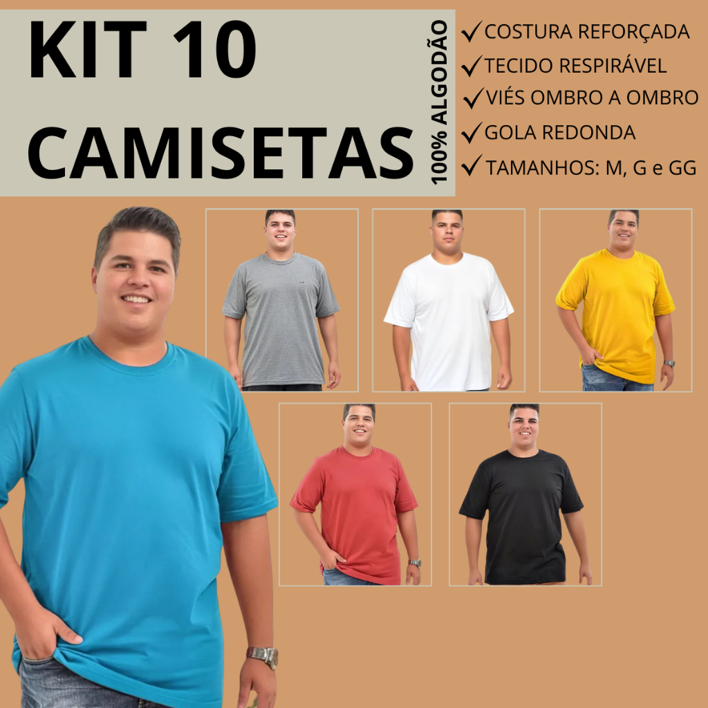 kit 10 camisetas Plus Size Básica Lisa Revenda Personalização tamanhos grandes 100% algodão G1 G2 G3 Fio 30.1 Atacado - 6% OFF | Men Clothes