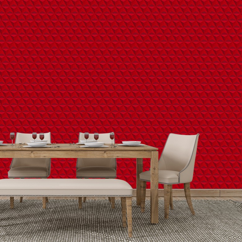 Papel De Parede Adesivo 3d Vinilico Triangular Vermelho Efeito Sombra
