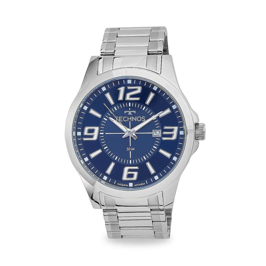 Relógio Technos Masculino Prateado Com Azul 2115Kzzs/1A - 15% OFF | Watches