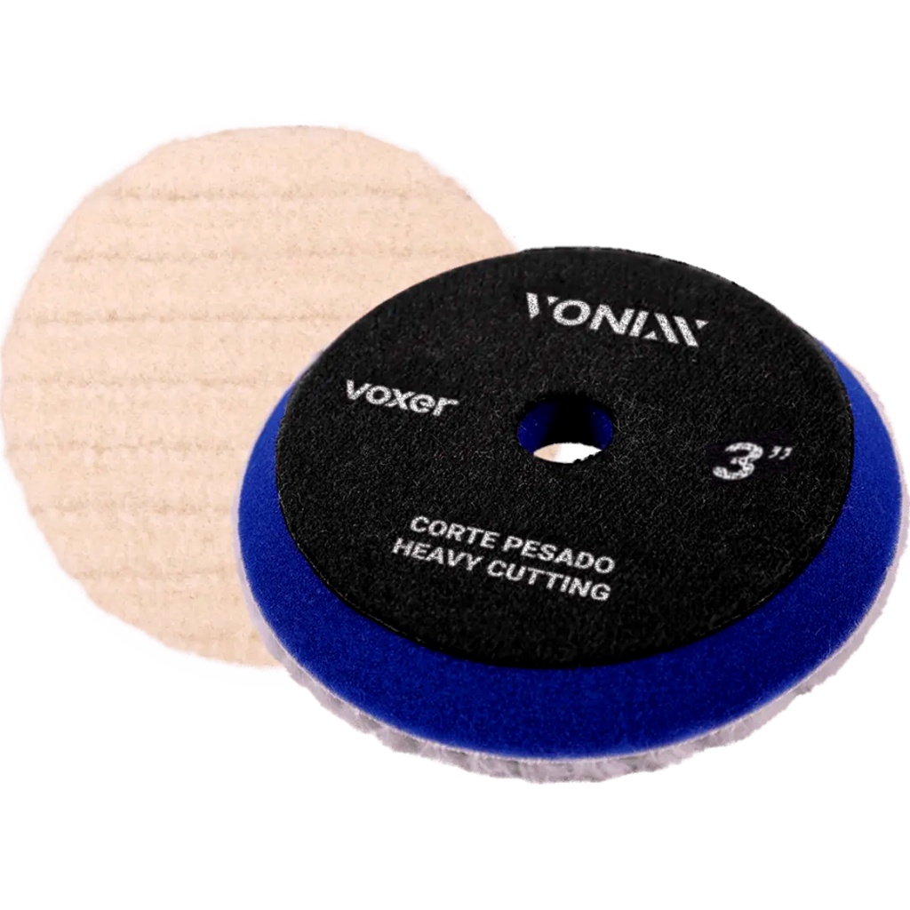 BOINA LÃ VOXER CORTE PESADO 3 POLEGADAS DESCRIÇÃO: Boina Voxer Lã de Corte Pesado foi desenvolvida para todos os tipos de vernizes, remove de casca de laranja, defeitos severos e marcas de lixa 1200. Pode ser utilizada em máquina de roto-orbital ou rotativa.