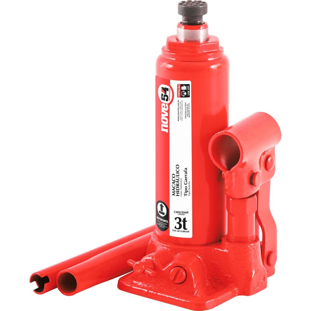 Conteúdo da embalagem 1 Macaco hidráulico tipo garrafa com 1 cabo de acionamento Aplicações e dicas de uso Indicado para elevação de veículos ou cargas de acordo com sua capacidade. Usar, armazenar e transportar somente na posição vertical para evitar vazamento de óleo. Quantidade total de óleo hidráulico: 68 ml Destaques e diferenciais Possui válvula de segurança para evitar elevação superior à sua capacidade, cabo dividido em 2 partes que facilita seu armazenamento e fuso de elevação com rosca que proporciona maior elevação e facilita o ajuste no momento da aplicação DETALHES TÉCNICOS Capacidade de carga do macaco hidráulico tipo garrafa: 3 toneladas Possui alça para movimentação: Não Altura mínima do macaco hidráulico tipo garrafa: 180,0 mm Curso do pistão do macaco hidráulico tipo garrafa: 100,0 mm Curso do fuso do macaco hidráulico tipo garrafa: 50 mm Altura máxima do macaco hidráulico tipo garrafa: 330,0 mm Diâmetro do fuso do macaco hidráulico tipo garrafa: 20,0 mm Prazo de garantia: 6 meses