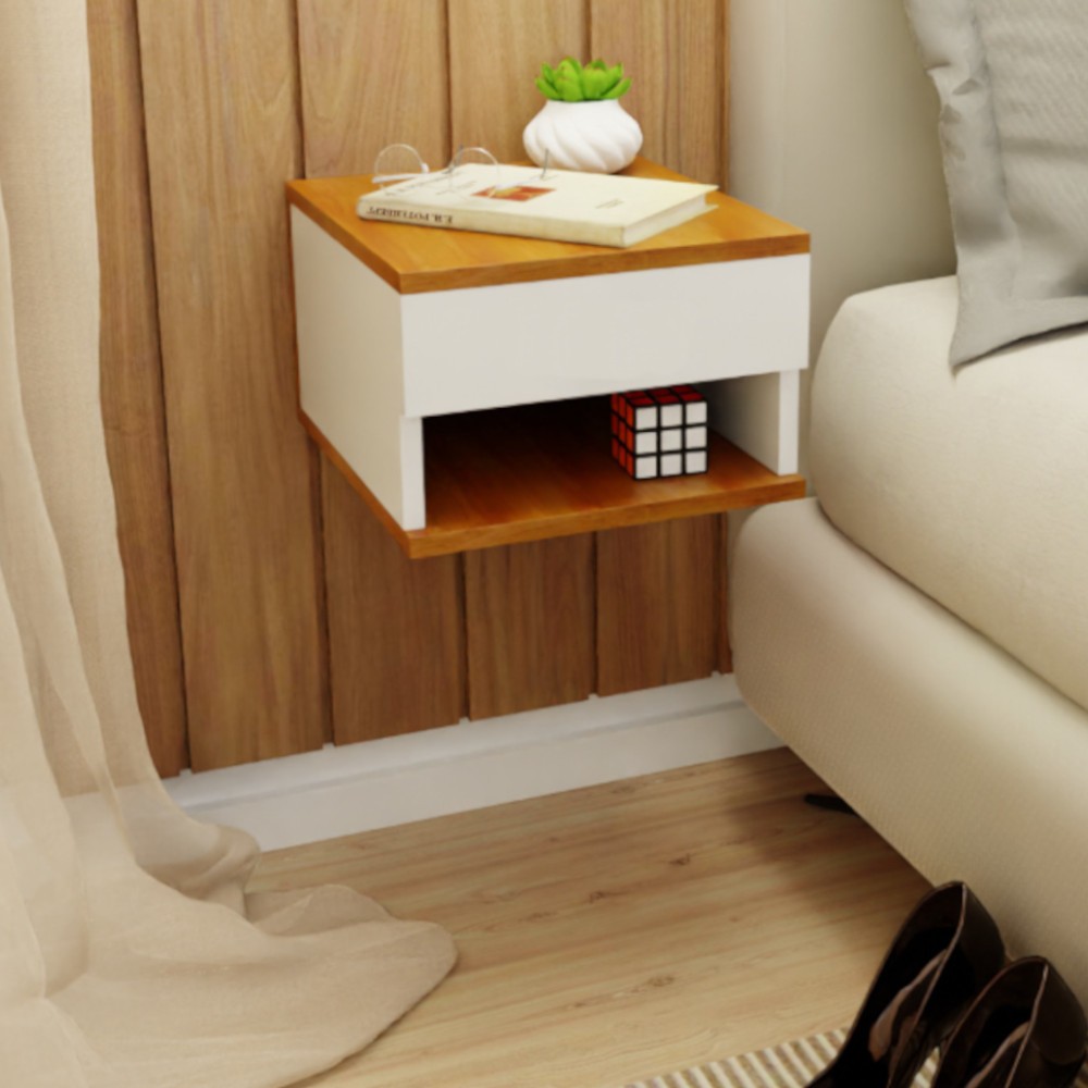Mesa De Cabeceira Mesinha Suspensa Com Gaveta e Nicho Várias Cores Branco Madeira Preto MVD Móveis | Home & Living