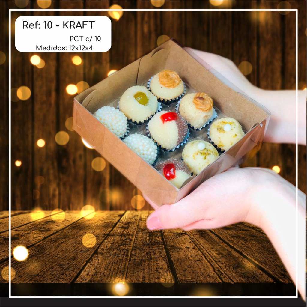 10~50 Caixas Embalagem 9 Doces Com Visor em Acetato KRAFT 12x12x4 - Ref. 10 ( Chocobraz ) | Stationery