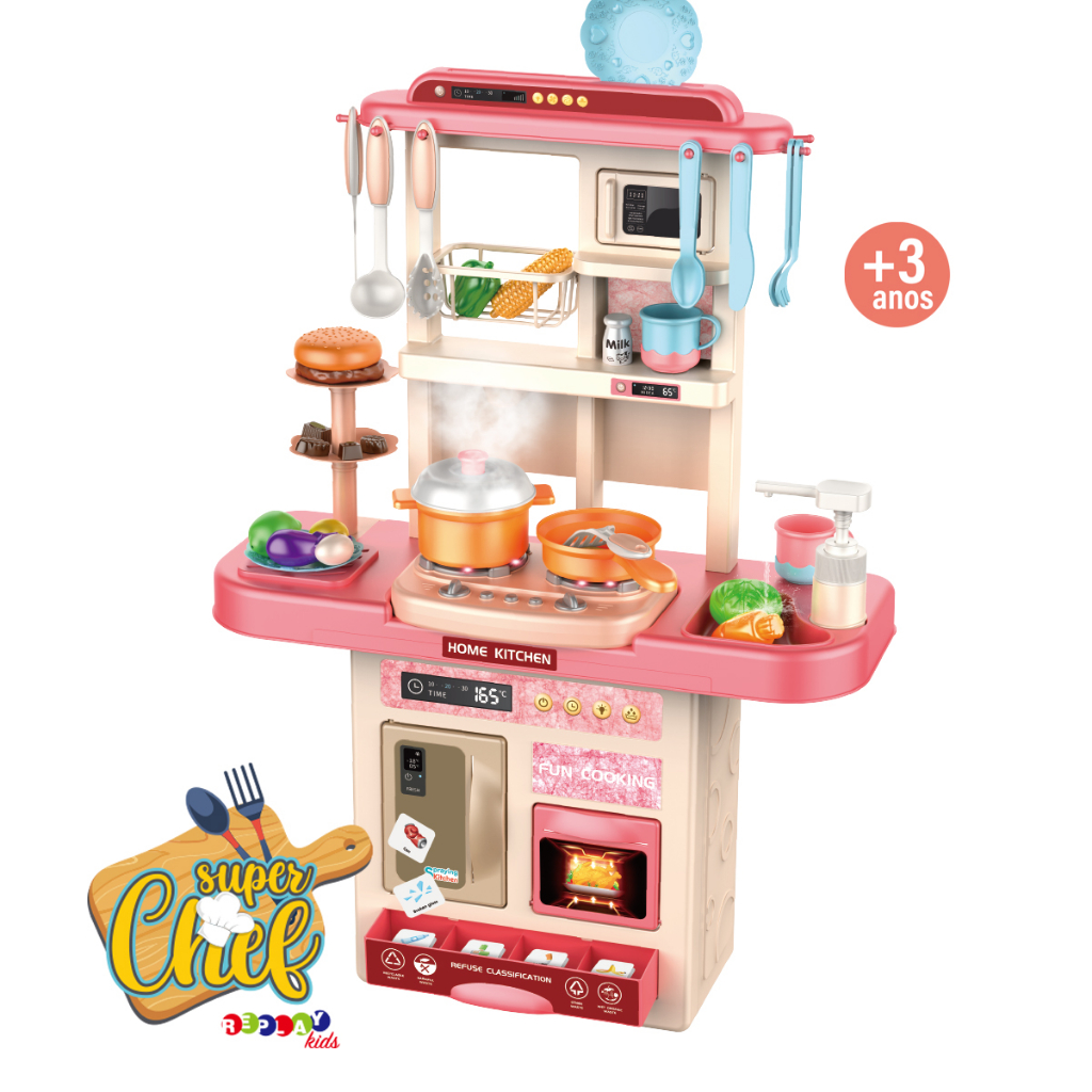 Cozinha Infantil Super Chef com Som e Efeito - Replay Kids Diversão garantida com essa bancada Super Chef Replay Kids. Todo lugar vira uma brincadeira! A bancada é cheia de efeitos e acessórios. Simula a fumaça e sons durante o preparo da comida, é possível lavar os alimentos na pia com água de verdade. Conta com o mais diversos compartimentos e acessórios para as mais incríveis brincadeiras de faz de conta. A criatividade é livre com a Super Chef da Replay Kids. Estimula a criatividade e imaginação das crianças por meio do faz de conta. Utiliza pilhas. Principais Características: - Idade Recomendada: A Partir de 3 Anos - Efeito de Som, Luzes e Fumaça - Torneira funciona de verdade - Necessário: 3 pilhas "AA" (não inclusas). Chave de Parafuso Phillips (não inclusa) - Ela proporciona as seguintes vantagens: interação entre pais e filhos, estimula a coordenação motora, criatividade e imaginação da criança. Especificações Técnicas: - Conteúdo da Embalagem: 1 Cozinha Super Chef de Brinquedo - Composição/Material: Plástico - Dimensões Aberto: 46,5 x 65,0 x 17,3 cm aprox. - Peso: 1,700 kg - Garantia: 90 Dias (Contra Defeito de Fabricação Pelo Fabricante) - Certificação: 003800/2023 - Código do Fabricante: 20993 - EAN: 7899403209935 - Marca: Replay Kids Imagens meramente ilustrativas, as cores e estampas podem variar de acordo com o lote do fabricante.