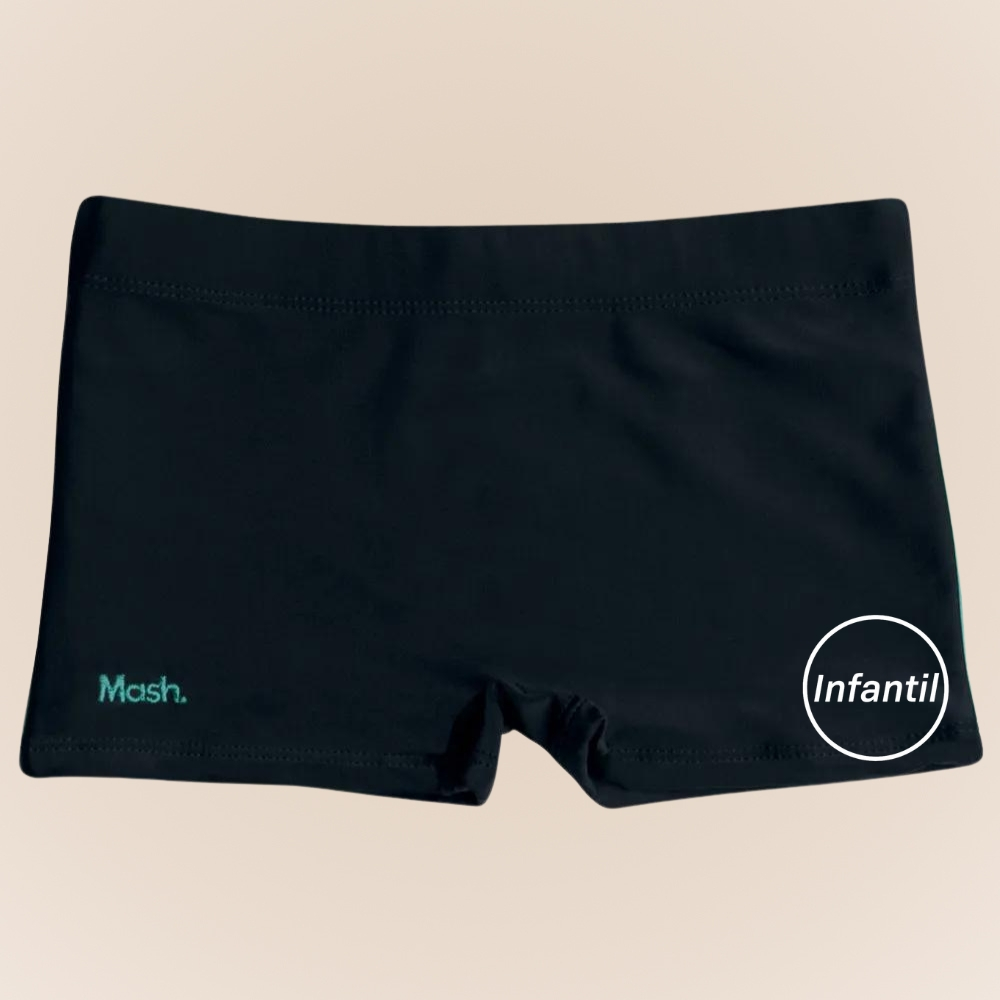 Sunga Infantil Boxer com Vivo Mash Kids. Sunga infantil modelagem boxer, sendo mais longa nas pernas, que se adapta ao corpo proporcionando maior conforto. Detalhe em vivos nas laterais (risco vertical feito em tecido) em cor contrastante. Cos largo com elastico interno e cordao para ajuste perfeito. Pernas com acabamento em elastico interno. Confeccionada em microfibra com a tecnologia do fio LYCRAR XTRA LIFE, que resiste ate 10 vezes mais ao cloro em relacao a produtos sem esse tratamento, permitindo maior durabilidade e melhor ajuste ao corpo. Modelo classico para acompanhar a diversao da criancada nas atividades dentro e fora d'agua. - Ideal para curtir os dias de verao. - Super confortavel. - Possui cordao interno para regulagem. - LYCRA XTRA LIFE. - Resiste ate 10 vezes mais ao cloro. - Maior durabilidade e melhor ajuste ao corpo. Composicao: 84% poliamida E 16% elastano. Forro: 100% poliamida.