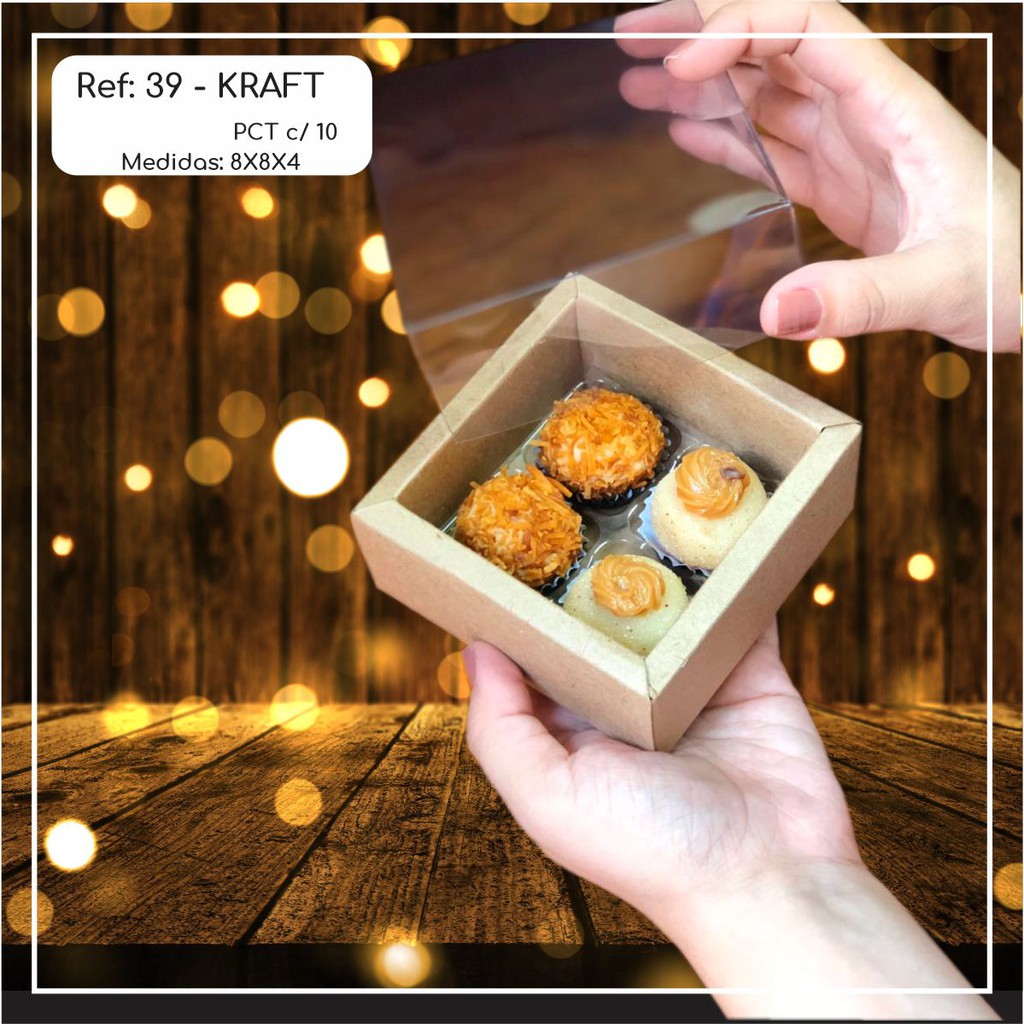 🎁 10 A 50 UNIDADES – CAIXA EMBALAGEM MOLDURA 4 DOCES COM VISOR EM ACETATO KRAFT 8X8X4 – REF. 39 (CHOCOBRAZ) 🍬✨